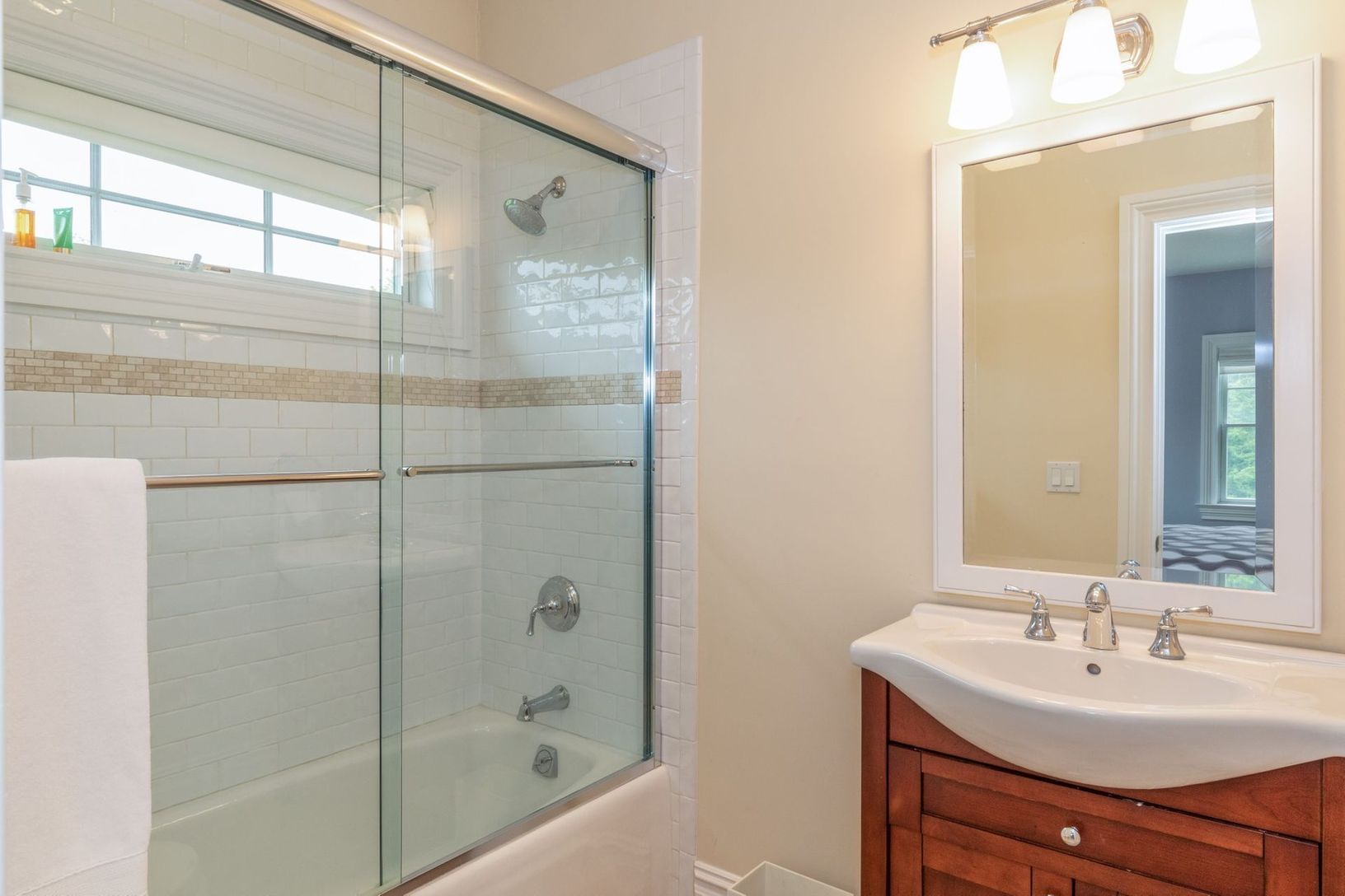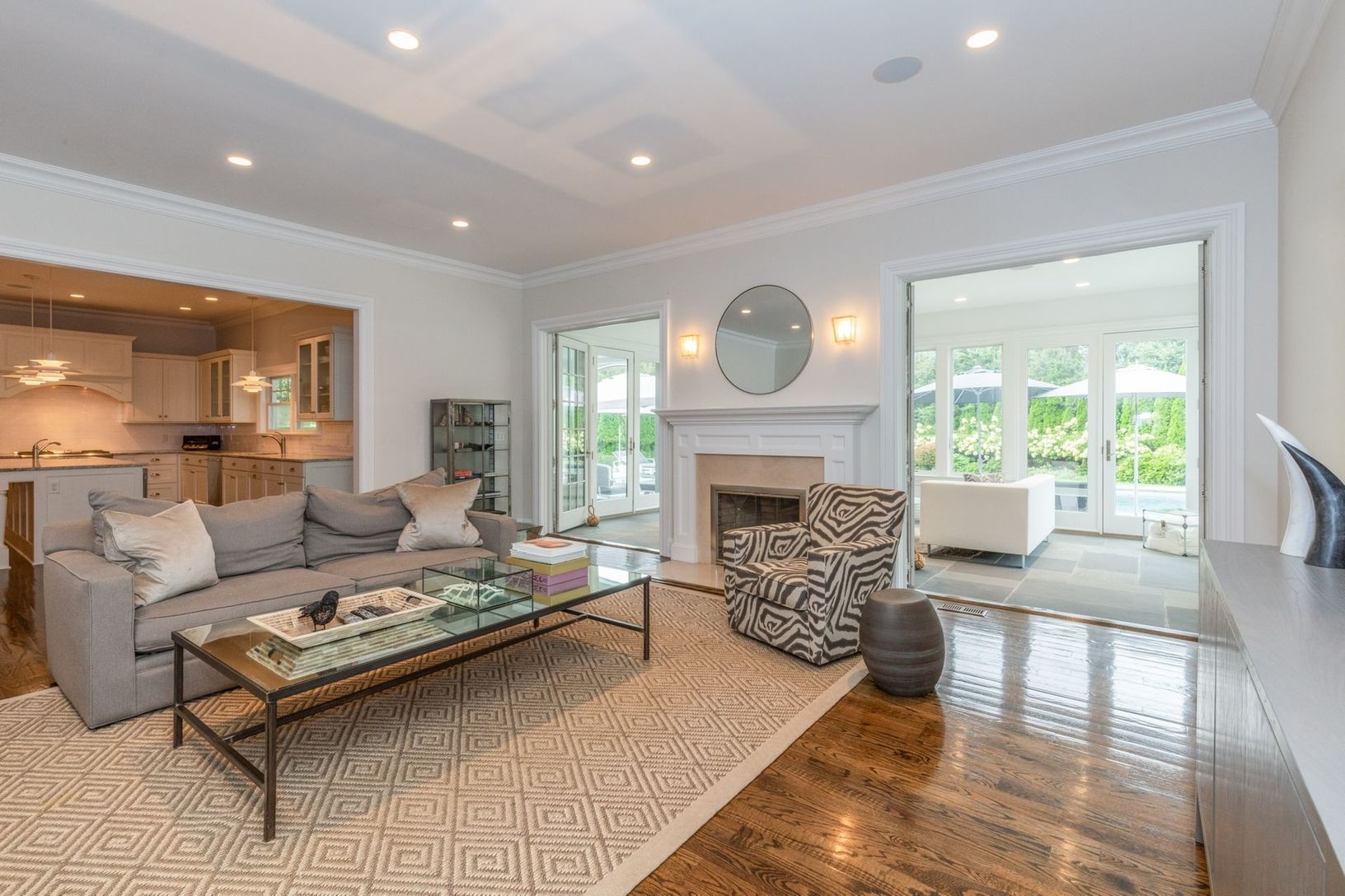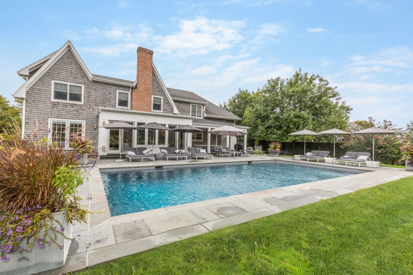 Open the front door to see the stunning two story foyer in this immaculate Traditional home located just north in Water Mill that has all the space one would need both inside and out. The interior has a living room with fireplace that leads to an enclosed sunroom, gourmet eat in kitchen with a large island, formal dining room, den and a large first floor master suite with french doors leading out to the ample lawn and heated gunite pool. The s