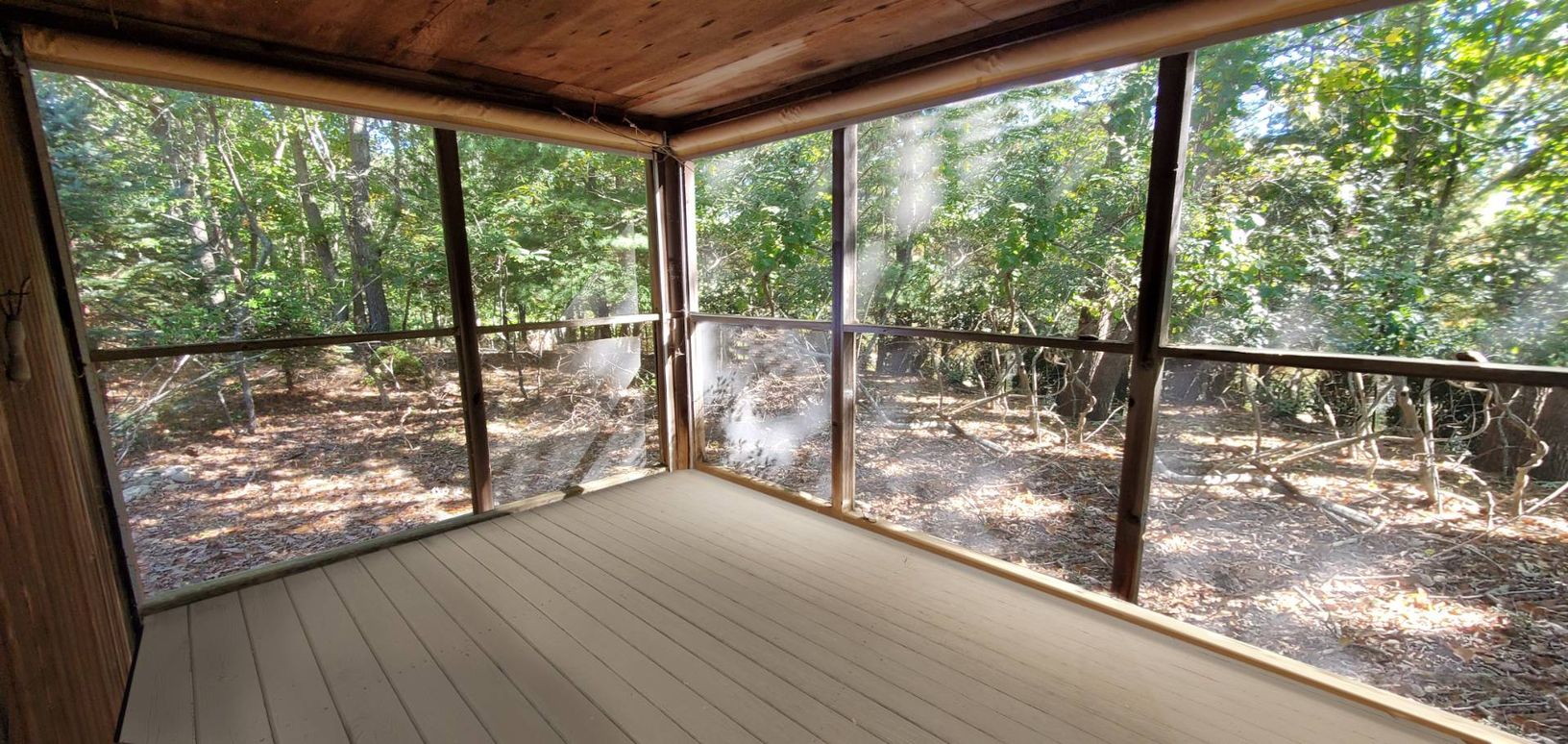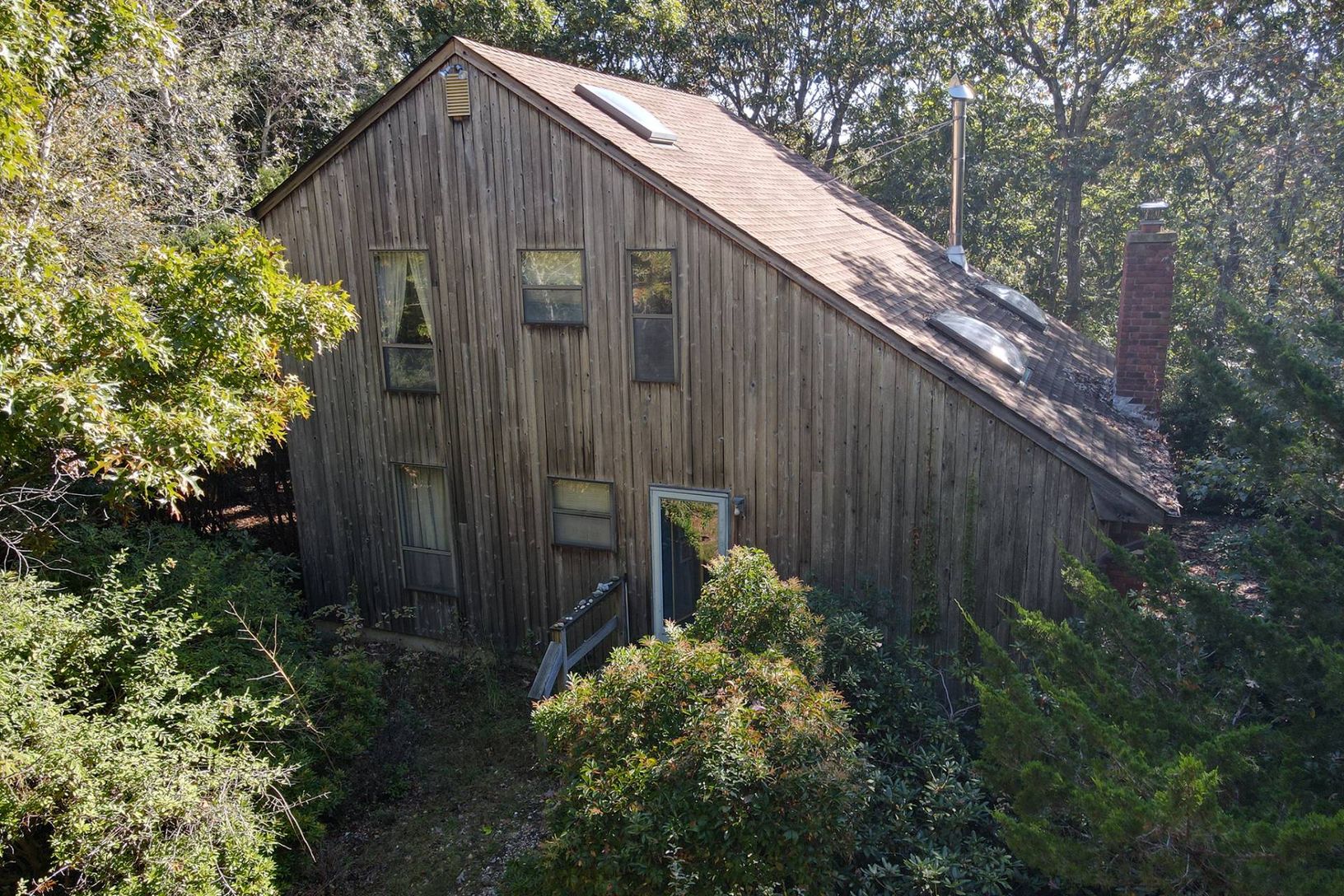 This large wooded flag lot is so private yet only 4 blocks to water access to Three Mile Harbor: perfect for kayaking or paddle boarding. The three bedroom, 2 bath saltbox is just waiting for your renovation to make it your own retreat. The 1.3 acre yard has plenty of room for a pool to make it a true oasis. Lot coverage allows for 11,325 sq. ft. for primary and secondary structures for both expanded house and pool. The lot clearing is up to 2
