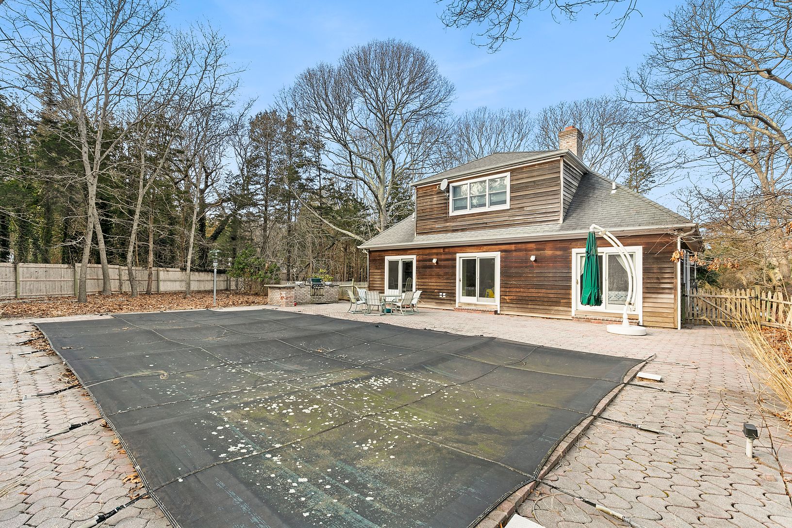 This beautiful 3-bedroom, 2-bathroom home with pool is a rare find, offering excellent value and tremendous upside potential. With a spacious .66-acre lot and great bones, this home is an easy upgrade and perfect for those seeking a Hamptons lifestyle. Enjoy the short distance to Sammy's Beach and the peace and quiet of a quiet cul-de-sac. The second level features a primary bedroom suite with a walk-in closet and generously sized bathroom. W