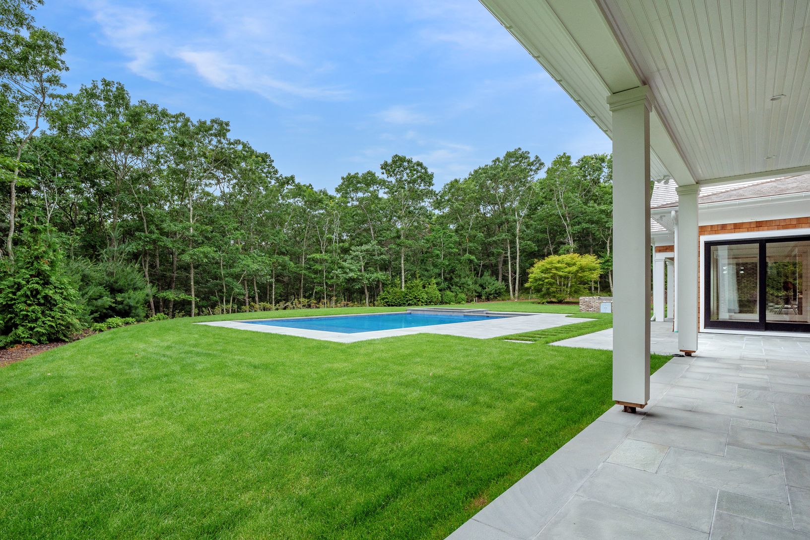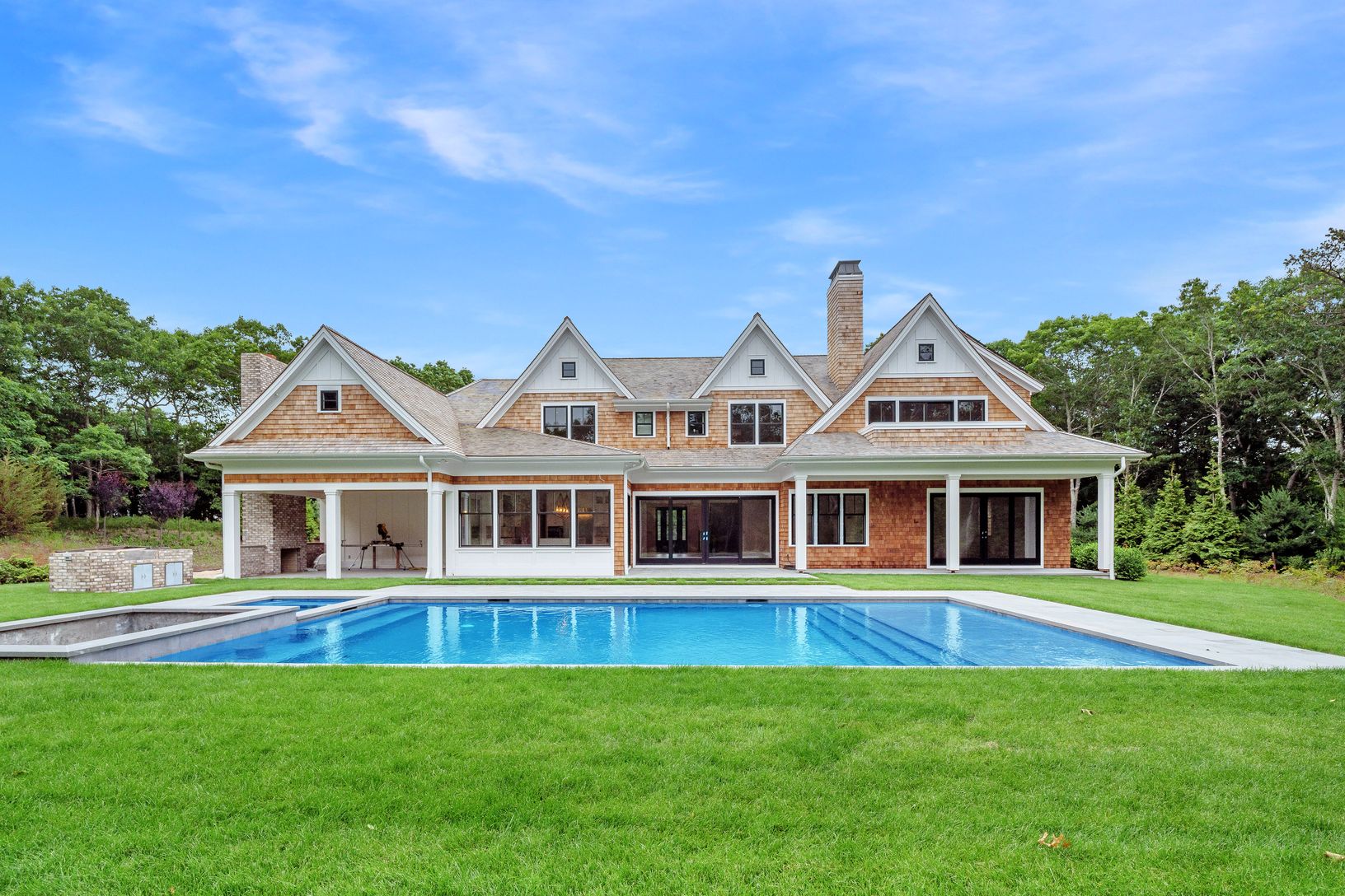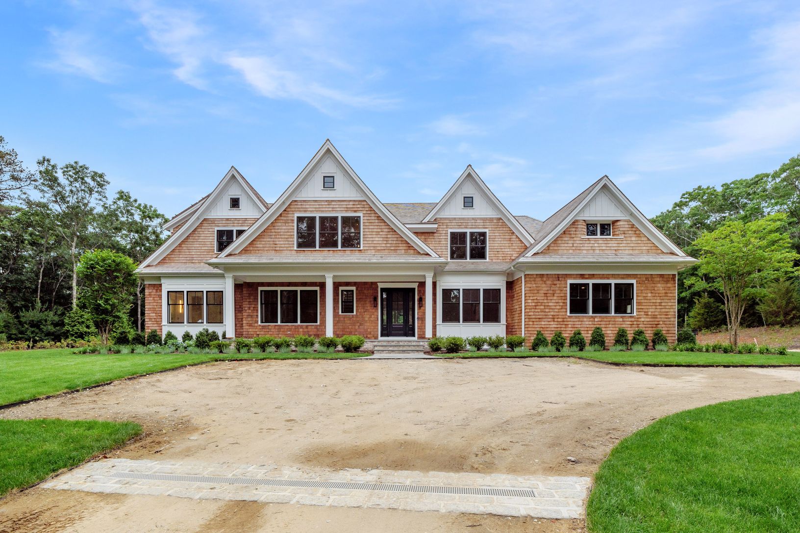 Expertly crafted new 6 bedroom, 8.5 bath home on a very private, and very quiet, cul-de-sac. Located just a short drive from the center of Southampton Village. The level of privacy is superb. You know on your initial approach that here is something special. Set up high, the multi-gabled facade has a commanding presence and stellar curb appeal. Extensive planning and consideration went into the design and layout of the 7,920 square feet across