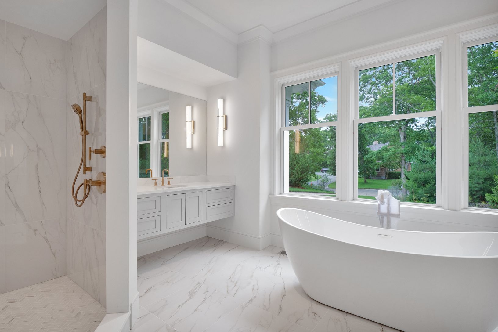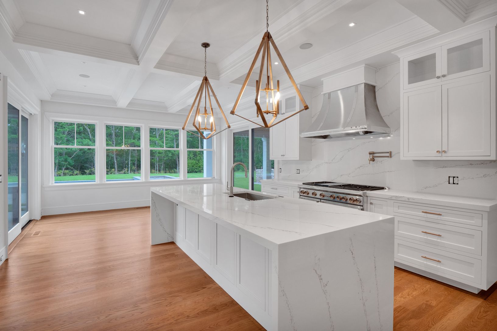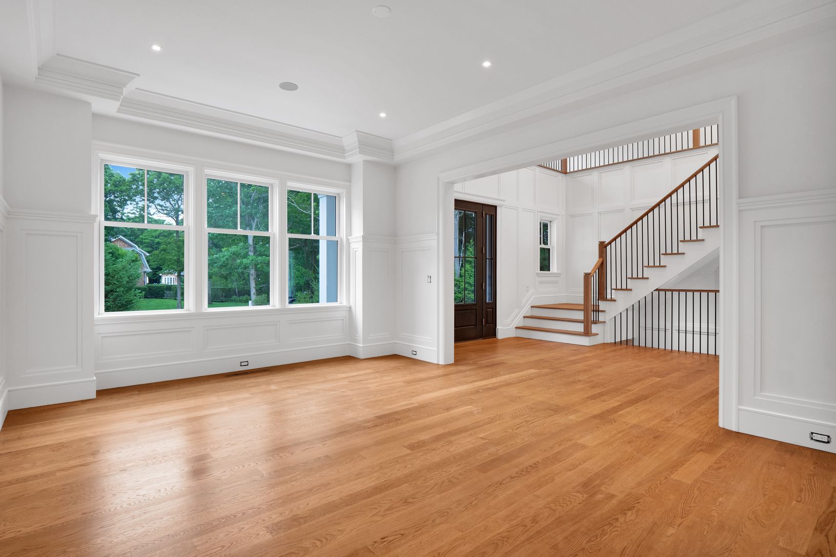Expertly crafted new 6 bedroom, 8.5 bath home on a very private, and very quiet, cul-de-sac. Located just a short drive from the center of Southampton Village. The level of privacy is superb. You know on your initial approach that here is something special. Set up high, the multi-gabled facade has a commanding presence and stellar curb appeal. Extensive planning and consideration went into the design and layout of the 7,920 square feet across