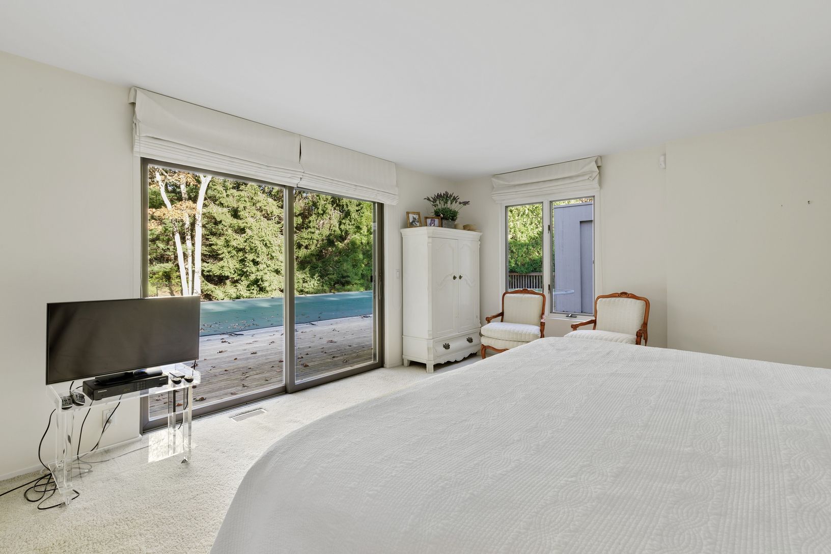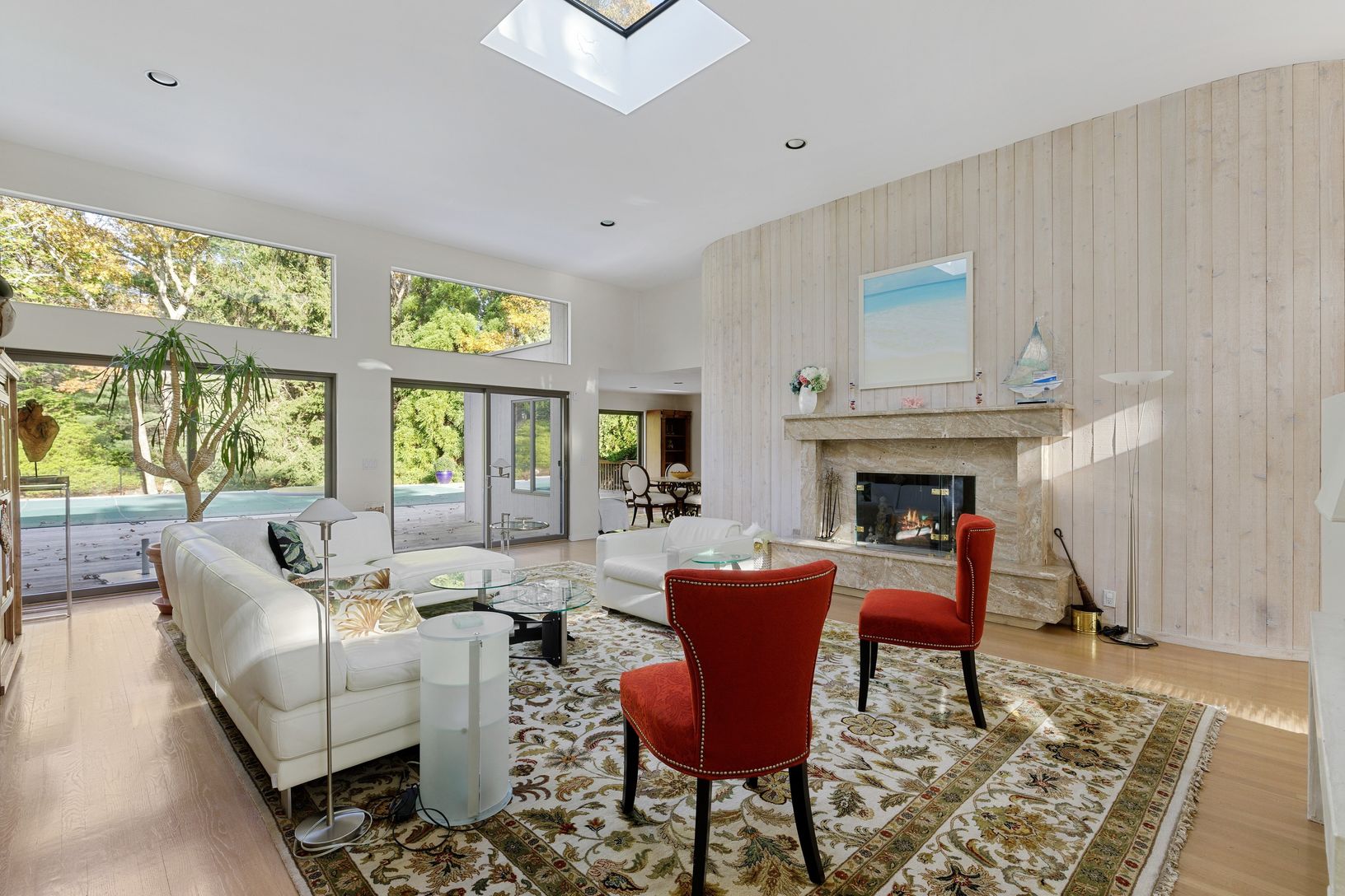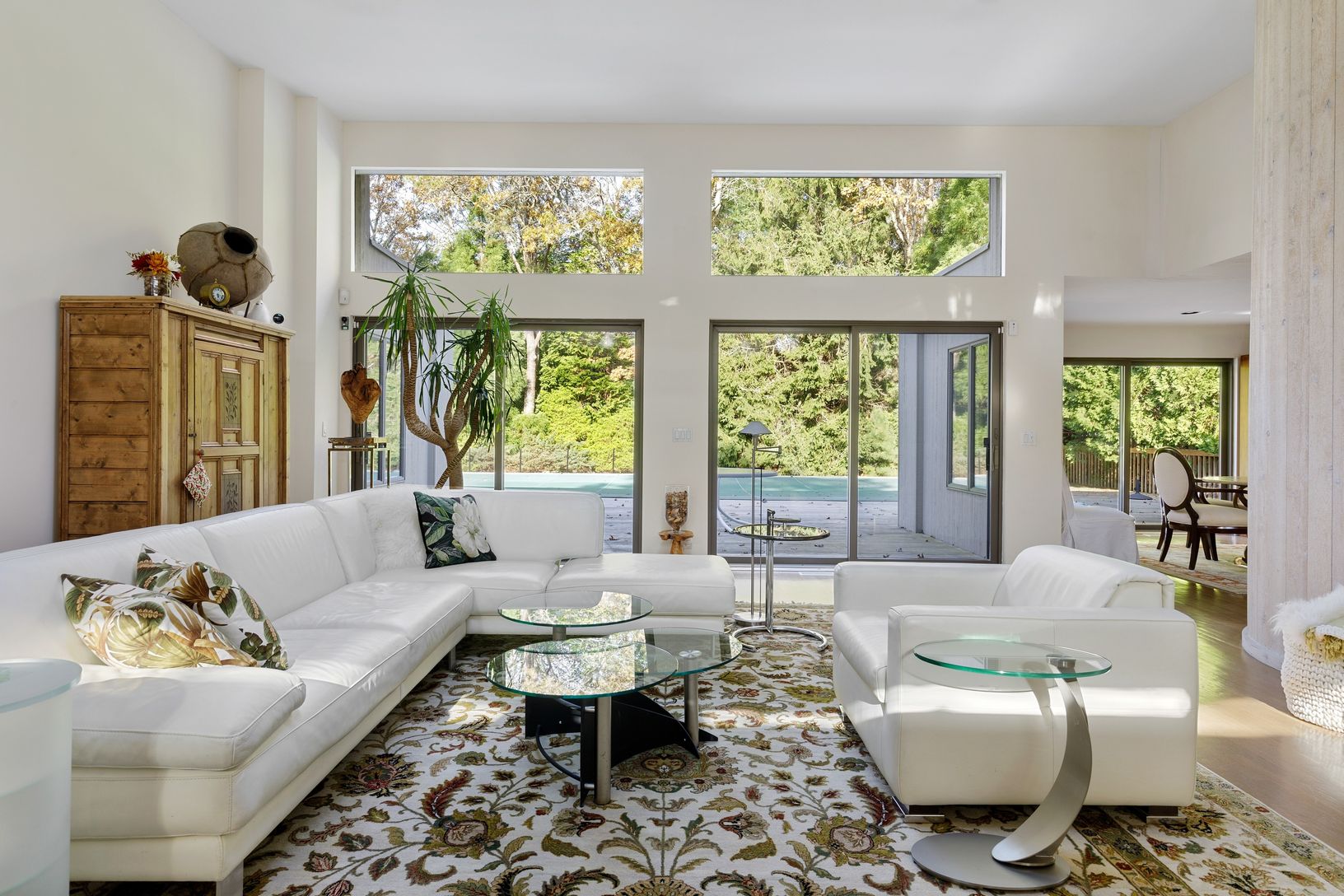 Move right into this fully furnished home & enjoy living in this Beautiful one level South of the highway contemporary (today) -- situated on a lushly landscaped acre with a 20X40 Pool, outside shower, sprinkler system, high ceilings, and beautiful entranceway. This home features a chefs kitchen, four bedrooms, four and one-half baths, master suite with steam shower and jacuzzi, dining room, huge great room/living room with fireplace, atta