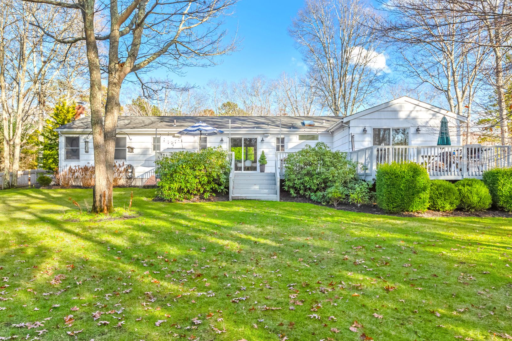 Tiana Shores: East Quogue/WHB schools. Beautifully updated Three bedroom two bath home with a separate updated accessory apartment. Accessory apartment has and open living room/kitchen floor plan with a separate large bathroom, bedroom, and outside deck. Meticulously landscaped.
