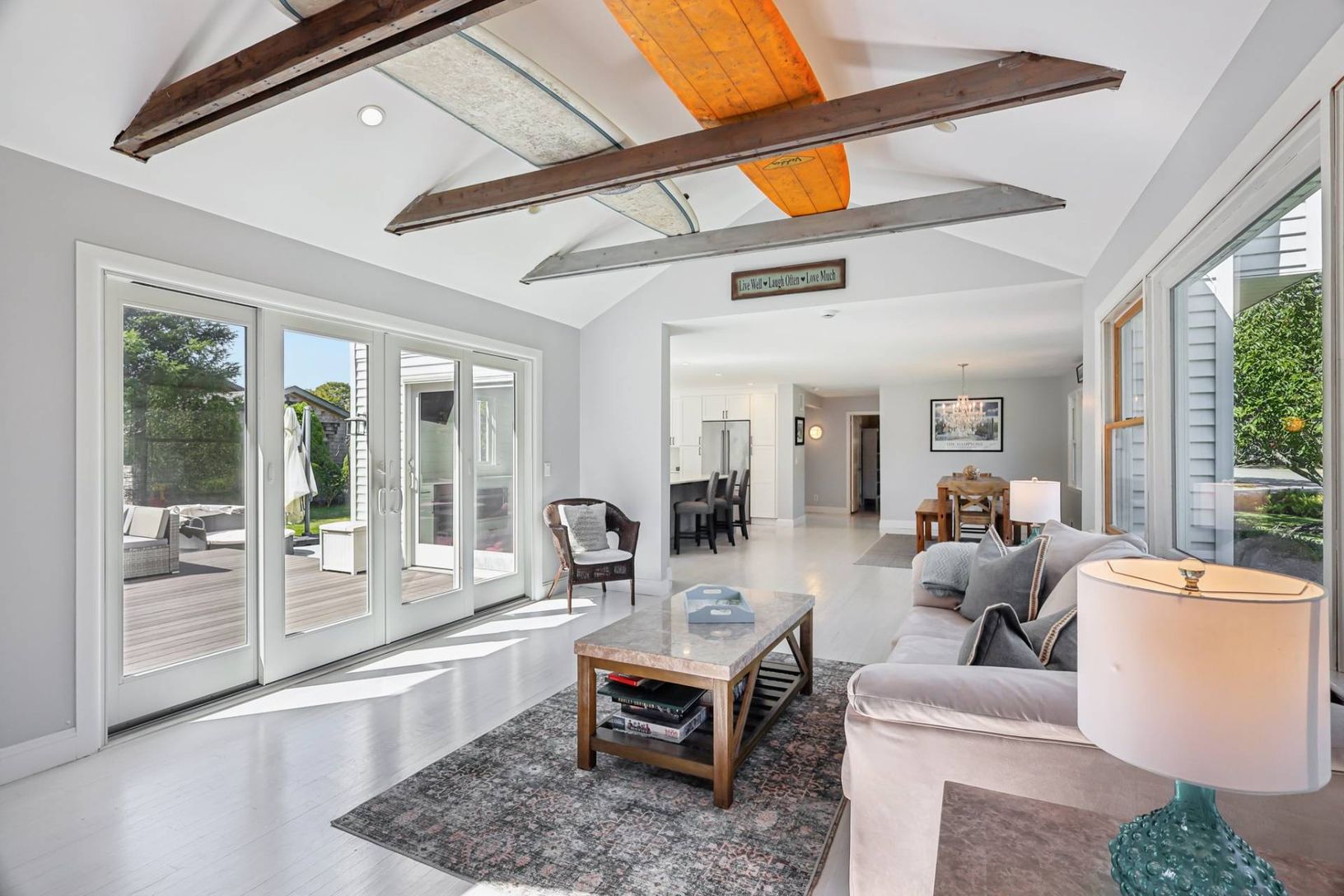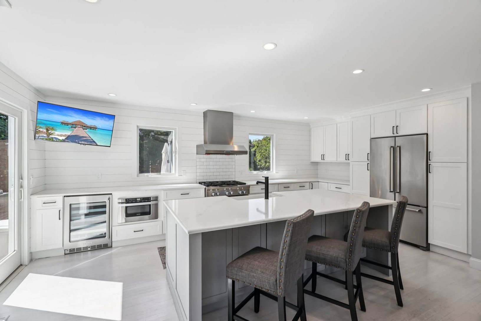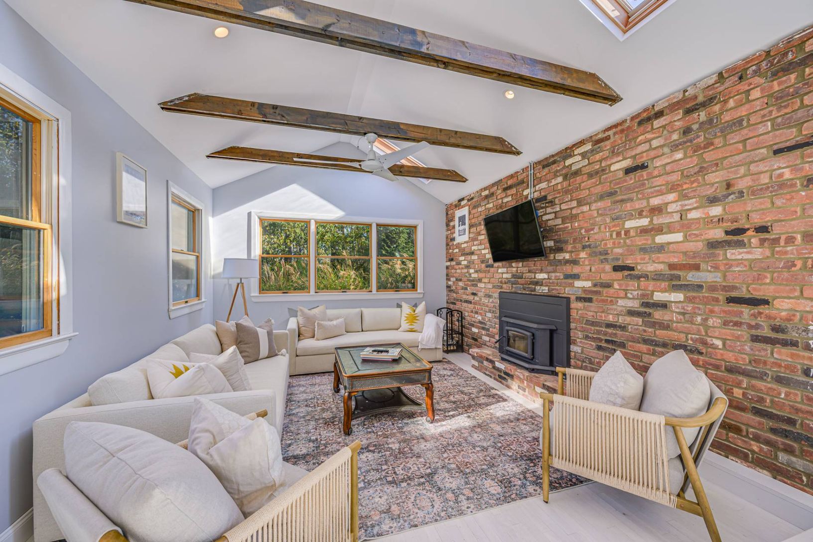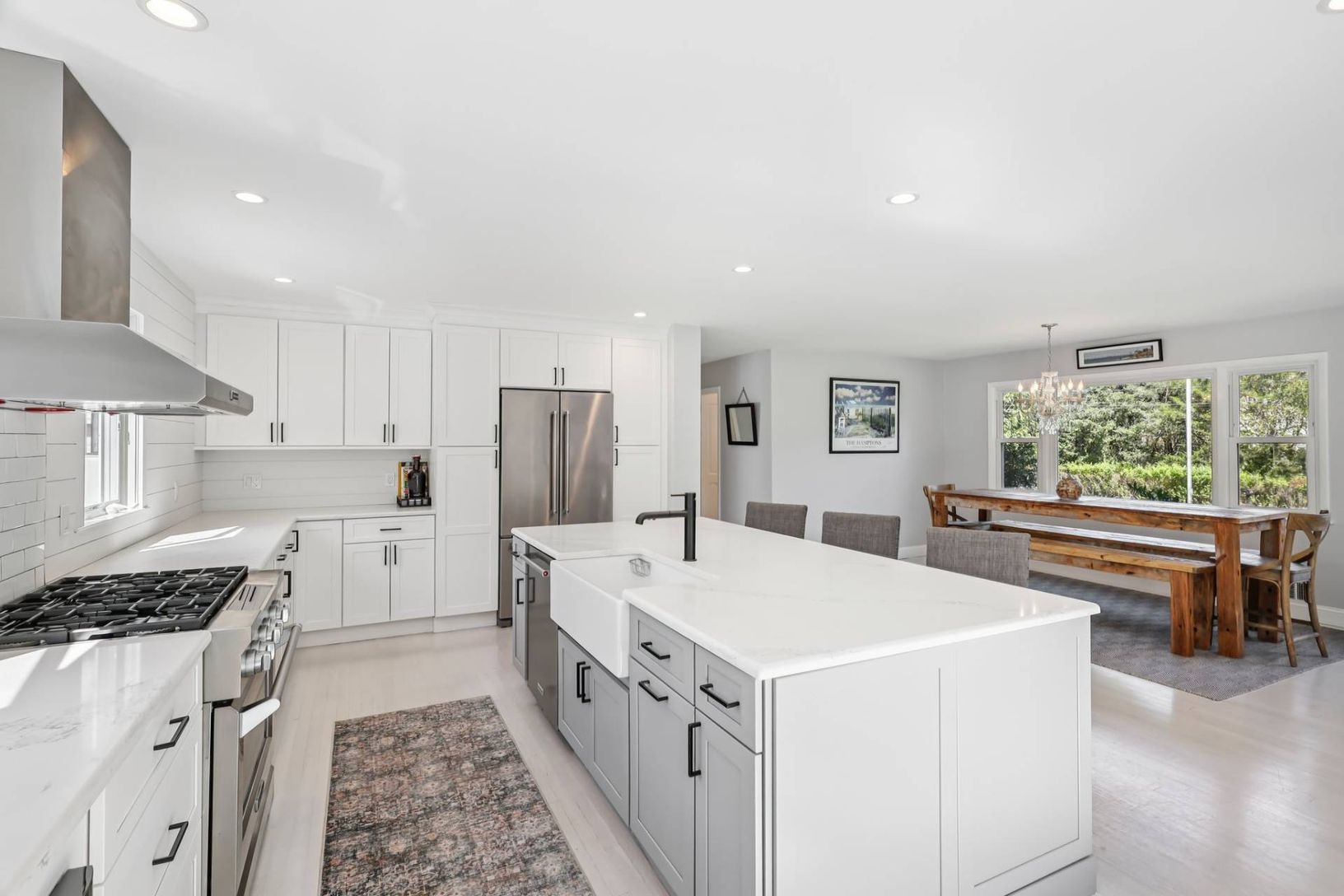 Offering private bay access just around the corner - this five bedroom, three bath home is ready for its next owner. The bright, white fully renovated open concept kitchen, with professional grade appliances, wine storage, and an oversized center island is perfect for entertaining. The kitchen connects seamlessly to the dining area, the double-height living space, complete with vaulted ceilings, brick fireplace and three sliders leading to the