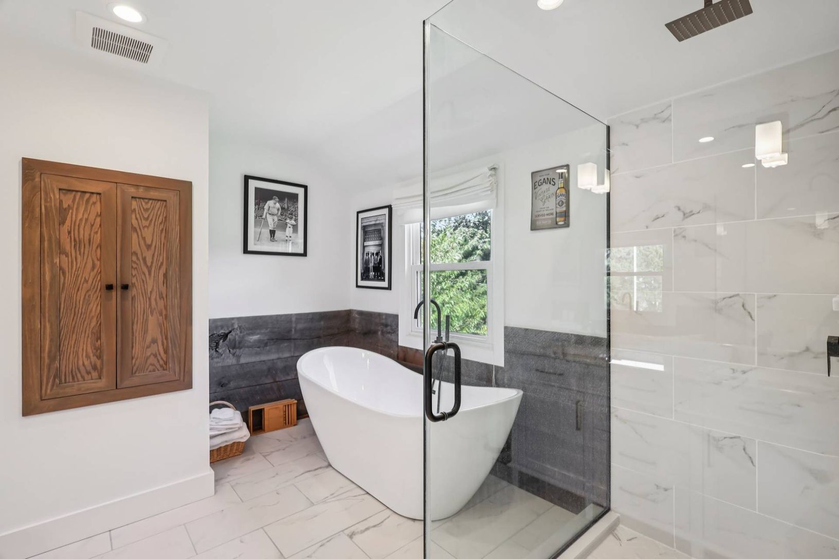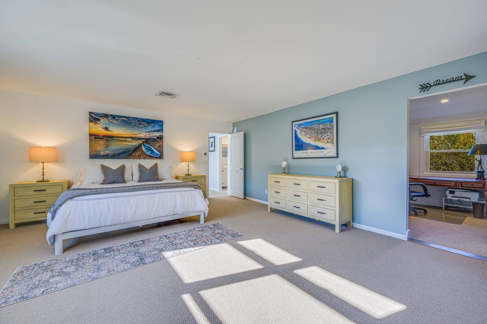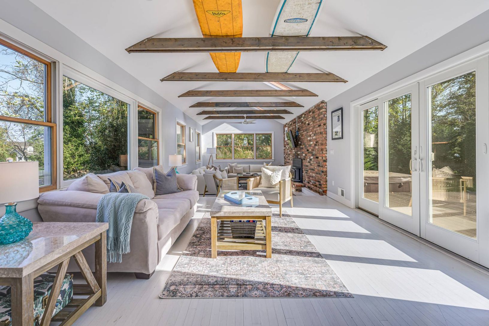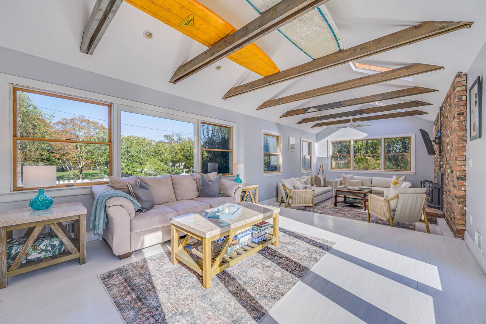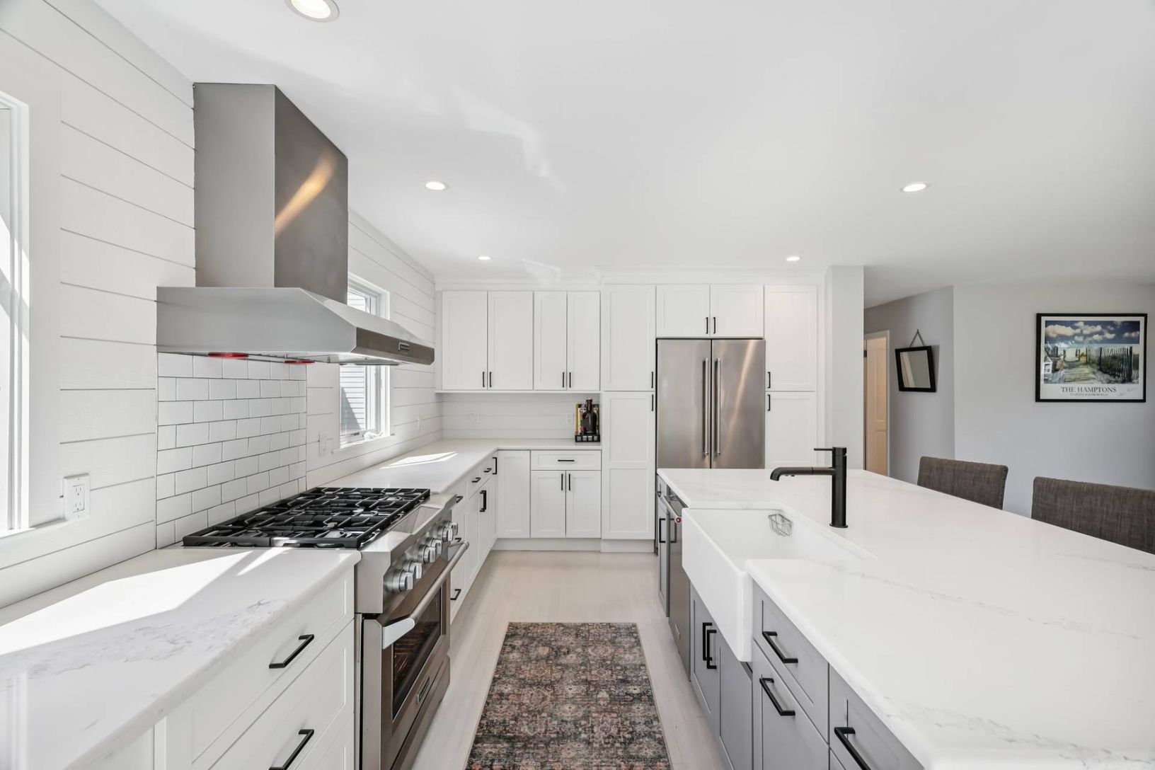 Offering private bay access just around the corner - this five bedroom, three bath home is ready for its next owner. The bright, white fully renovated open concept kitchen, with professional grade appliances, wine storage, and an oversized center island is perfect for entertaining. The kitchen connects seamlessly to the dining area, the double-height living space, complete with vaulted ceilings, brick fireplace and three sliders leading to the