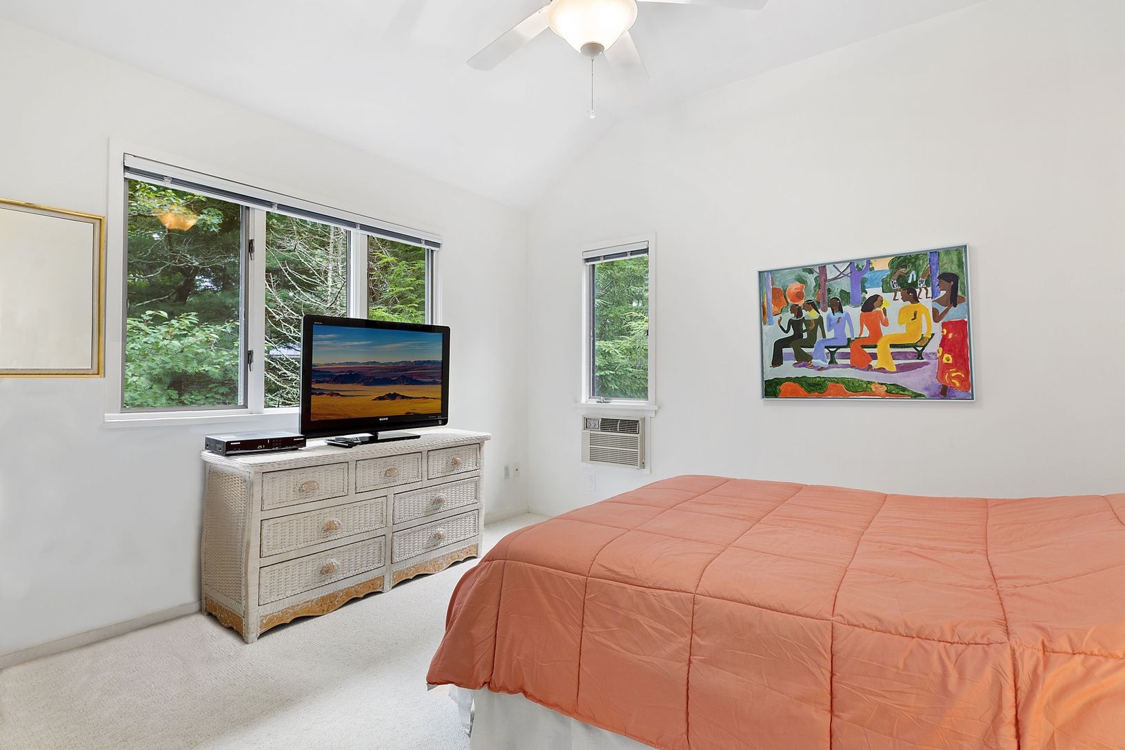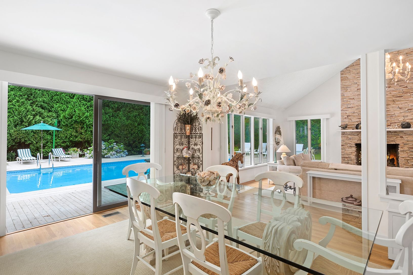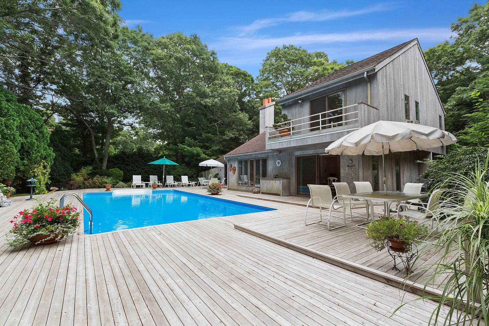 Located just outside of East Hampton Village, this 3 bedroom 2.5 bath contemporary offers 2,000 square feet featuring an open floor plan of main level living space opening to the back deck and heated pool. The house is open and bright with a master on the first floor and two guest bedrooms on the second level with additional office space. This house has great potential in a private neighborhood not too far from East Hampton Village beaches.