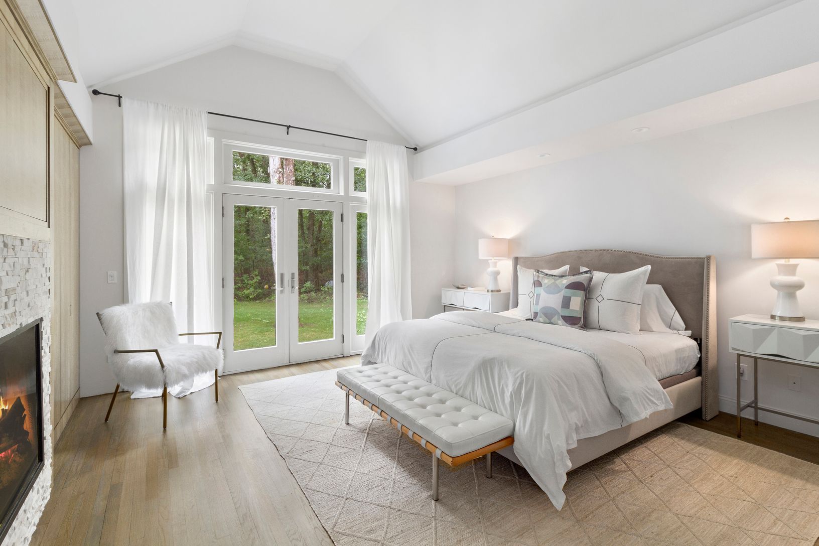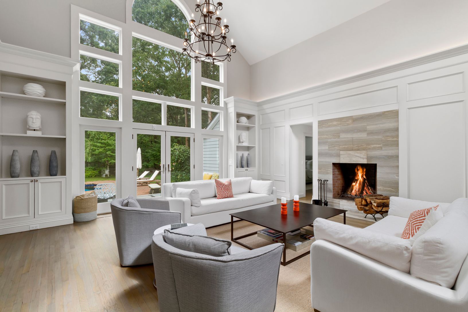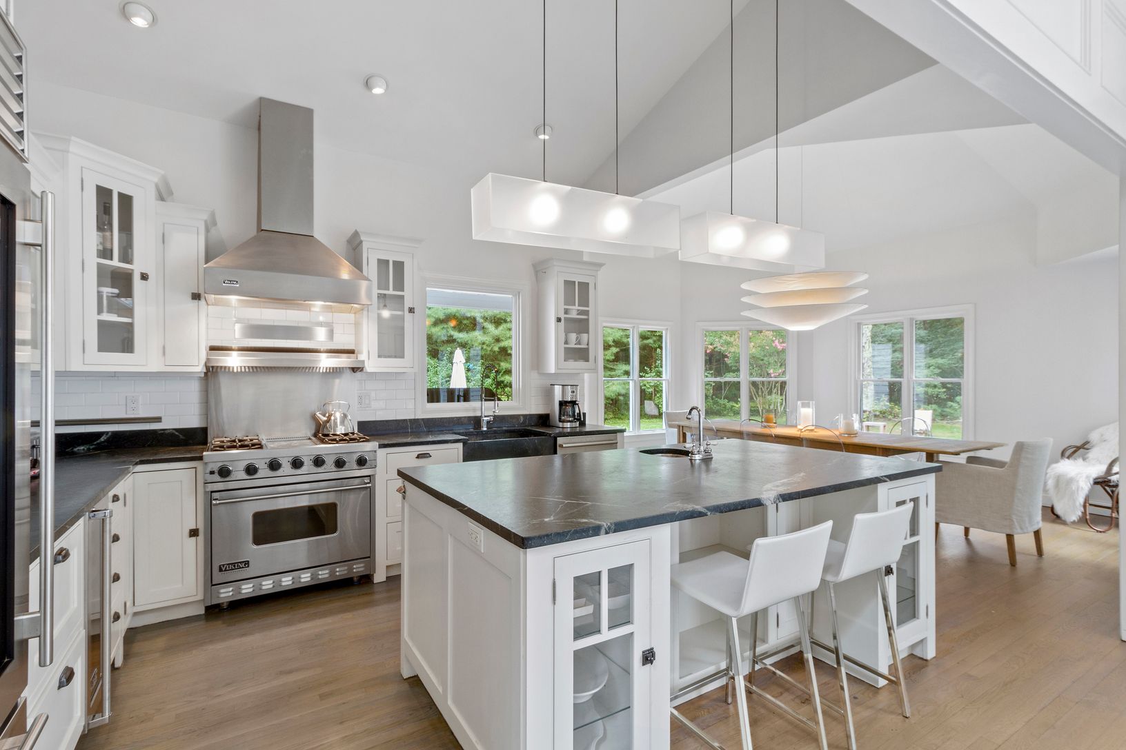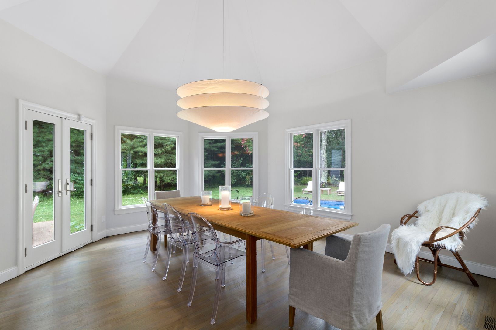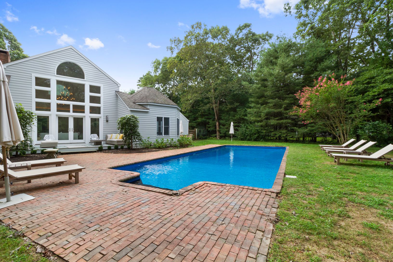 Stylishly modern with a double height ceiling great room, walls of windows access onto the large patio that surrounds the heated pool is designed for entertaining set in an open grassy lawn. A short distance to Atlantic Ocean Beach, East Hampton & Amagansett Villages. Newly refurbished 4 bedroom / 3.5 bathroom ~ Master suite includes a sauna plus two Jr. Master suites and a four bedroom plus a guest powder room. All in the comfort of cent