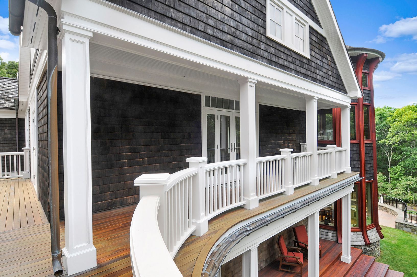 Designed by Vanity Fair architect Basil Walter, this custom shingle styled traditional is located close to the Village in Hands Creek Farm, on a quiet cul-de sac bordered by preserve lands. Set among mature landscaping and gardens, this stunning home is the perfect setting for family enjoyment and entertaining. The home offers 6500 square foot of living space with 6 bedrooms, 7 baths, and a distinctive tower that forms a focal point for indoor