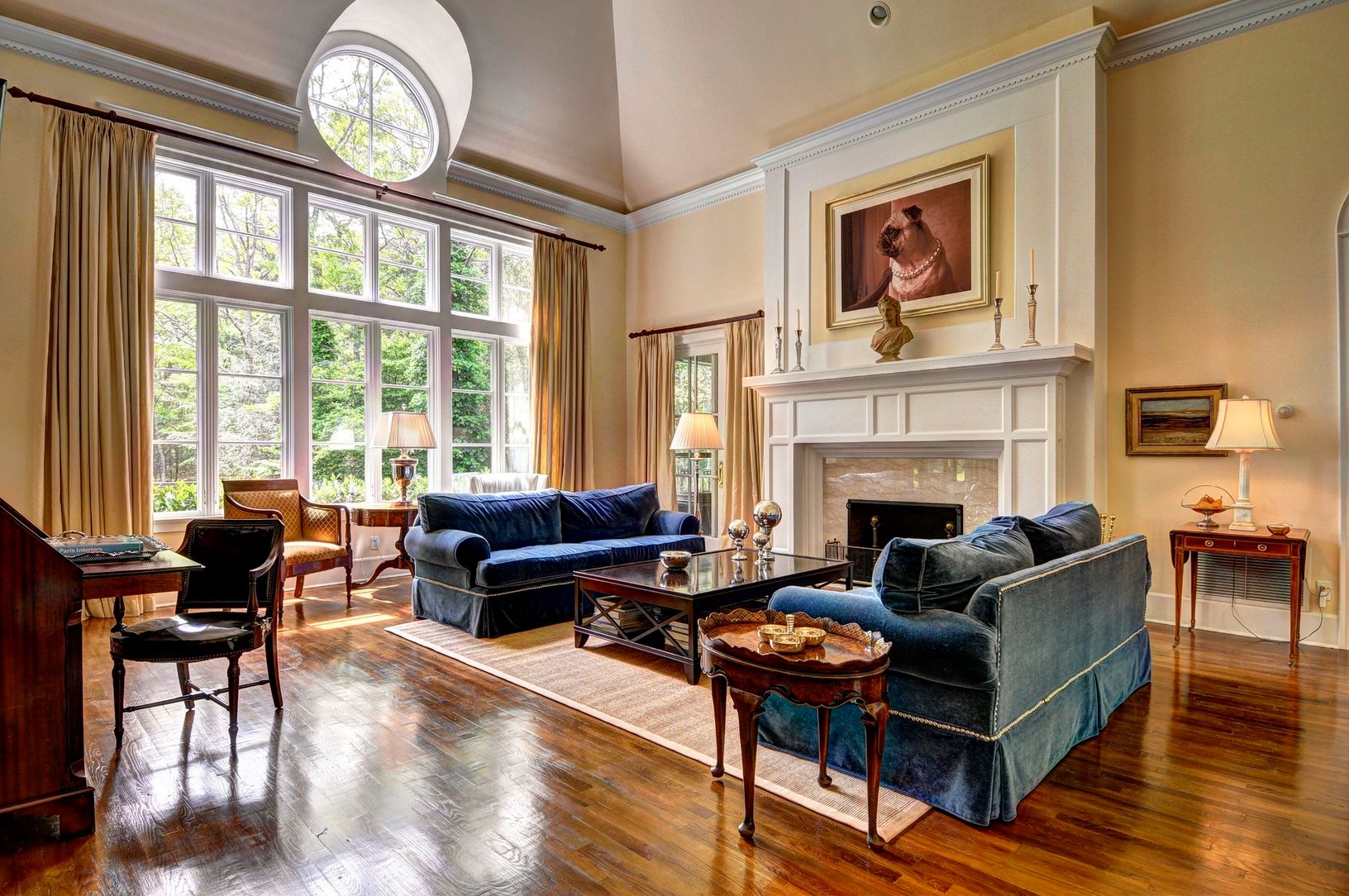 The gracious marble entry foyer welcomes you to this unique and elegant residence. A two-story living room, formal dining room, chef's kitchen and paneled library all combine to cre