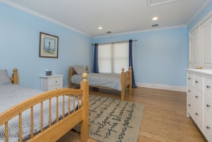 It doesn't get much better than this! A lovely East Quogue home, close to Main Street with its own Jitney stop and restaurants galore. This clean, newly renovated home is located in a private community with a private bay beach and dock (22-footer maximum and small dues apply). The home also has a heated pool in the backyard, six bedrooms, three baths, central air and a ground floor bedroom. It offers an open layout with eat-in kitchen, formal