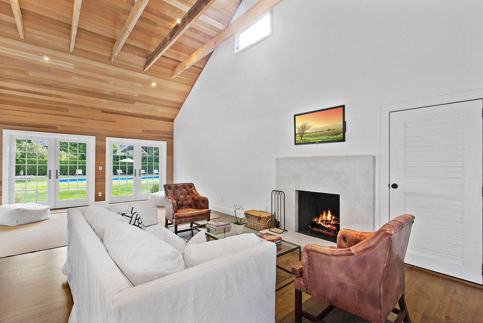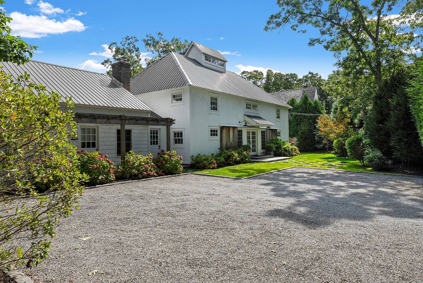 Impeccable and totally private, this home is located south of the highway, tucked away on a quiet, wooded lane that feels like a true escape-yet it's super close to Wainscott village, East Hampton, and just a quick bike ride to the beach and nearby historic estates. The main living space has a beautiful open layout with a barn-inspired great room that feels both stylish and serene. Off to the side, there's a separate wing with a game room/fami