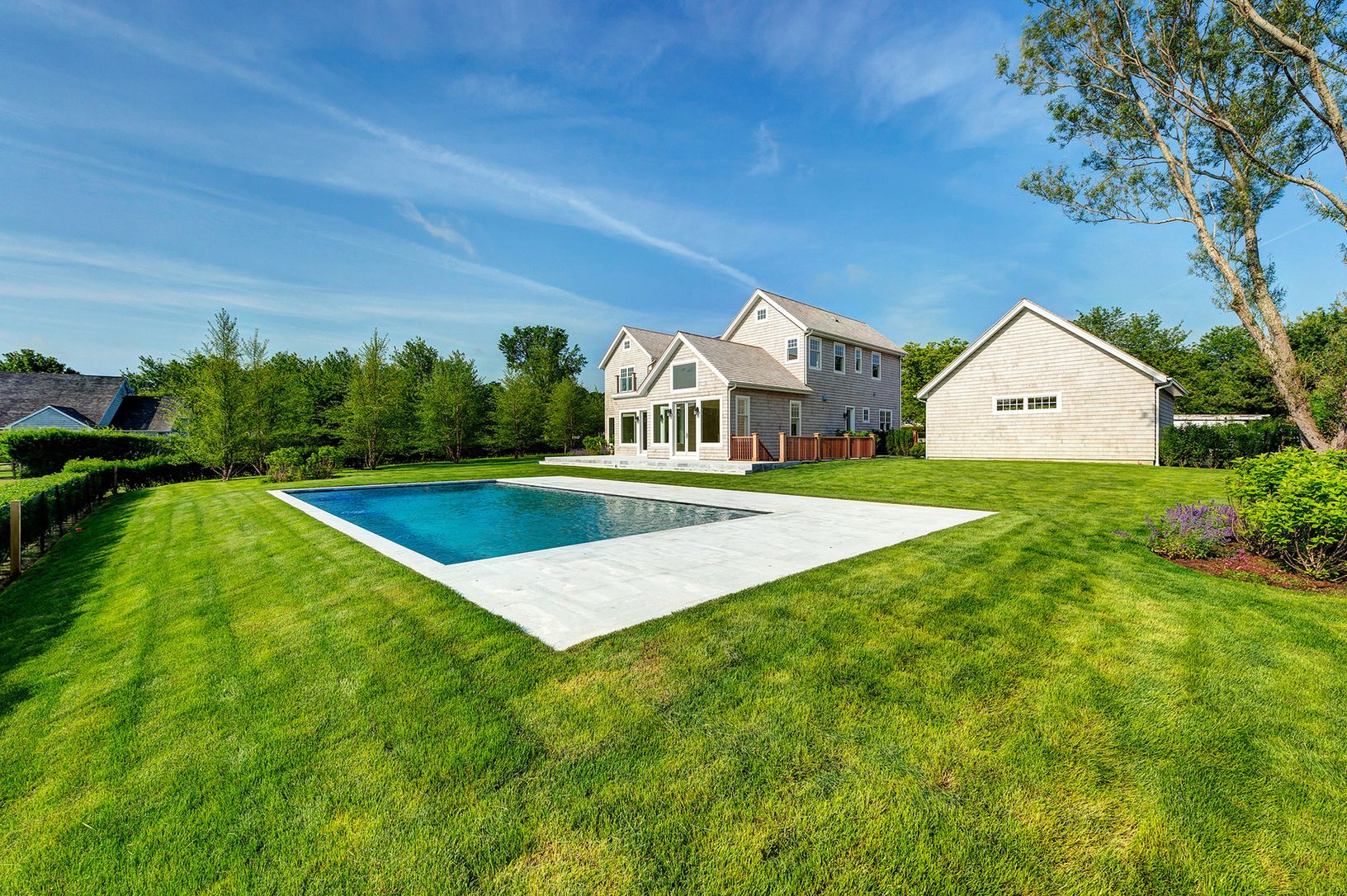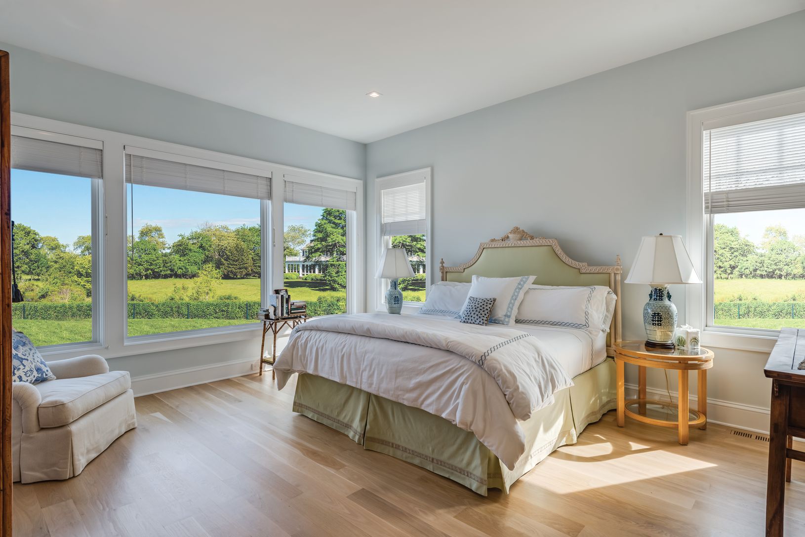 New construction traditional on a quiet Association cul-de-sac in Bridgehampton presents captivating views of a bucolic pond and scenic covered bridge from many rooms. Impeccably crafted by MKL Builders in 2018 the home provides seven bedrooms and seven baths in 5,200+/- sq. ft. of living space, inclusive of the finished lower level. High ceilings and large windows flood the interiors with natural light and vaulted ceilings in bedrooms accommo