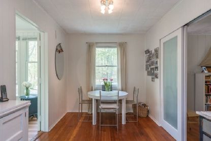 Located within close proximity to town and with views to the preserve at historic Sylvester Manor, Shelter Island's first plantation, this charming cottage sited on .75+/- acres is immaculate and turnkey. The living room is spacious with frosted sliding doors to dining area which has a window overlooking the garden and is adjacent to a galley style kitchen. The master bedroom is cheery with a door to the garden and windows all around. The seco