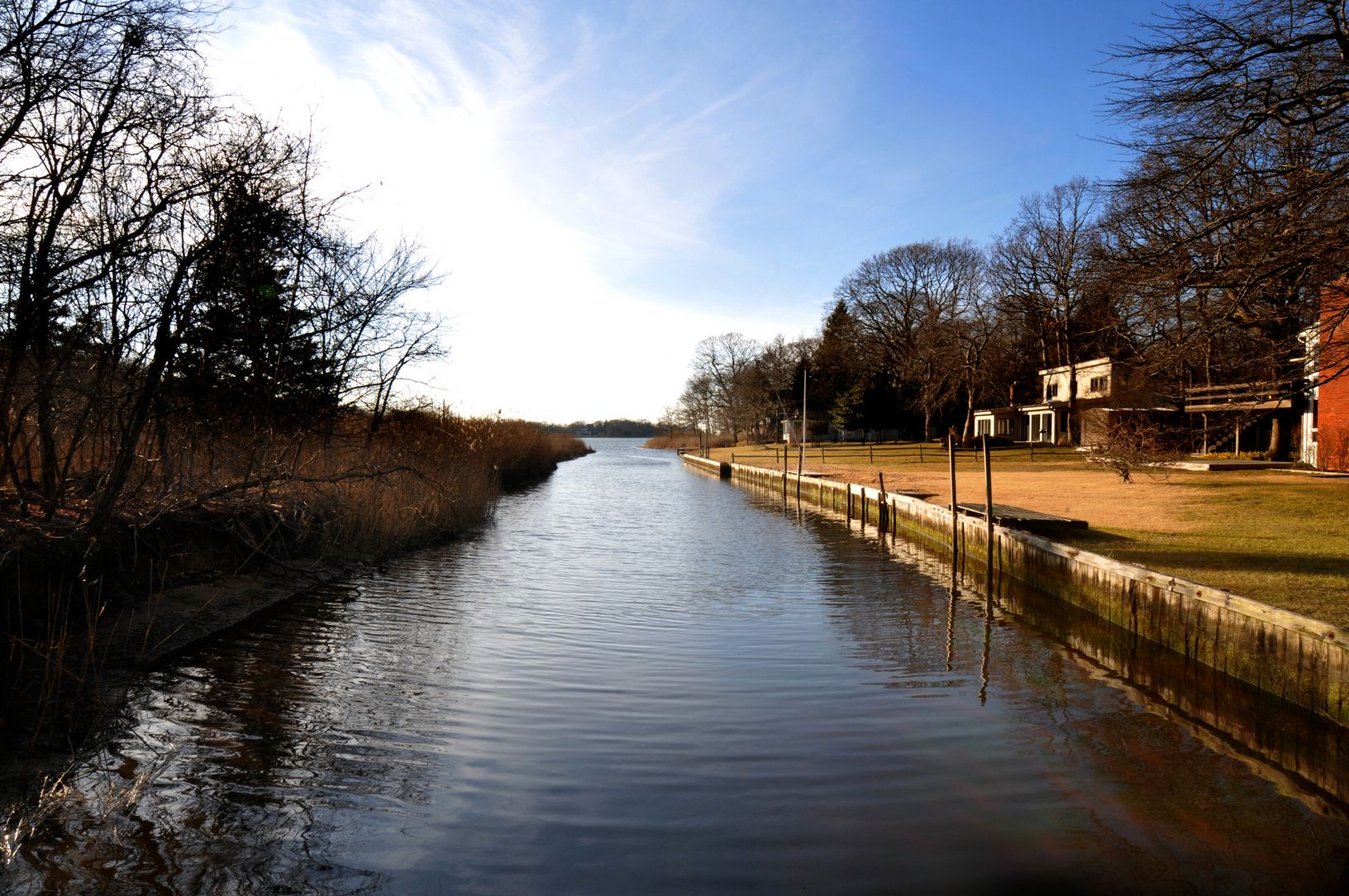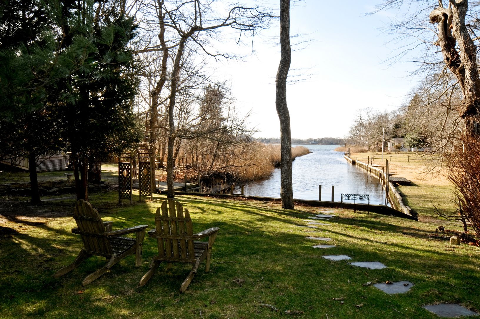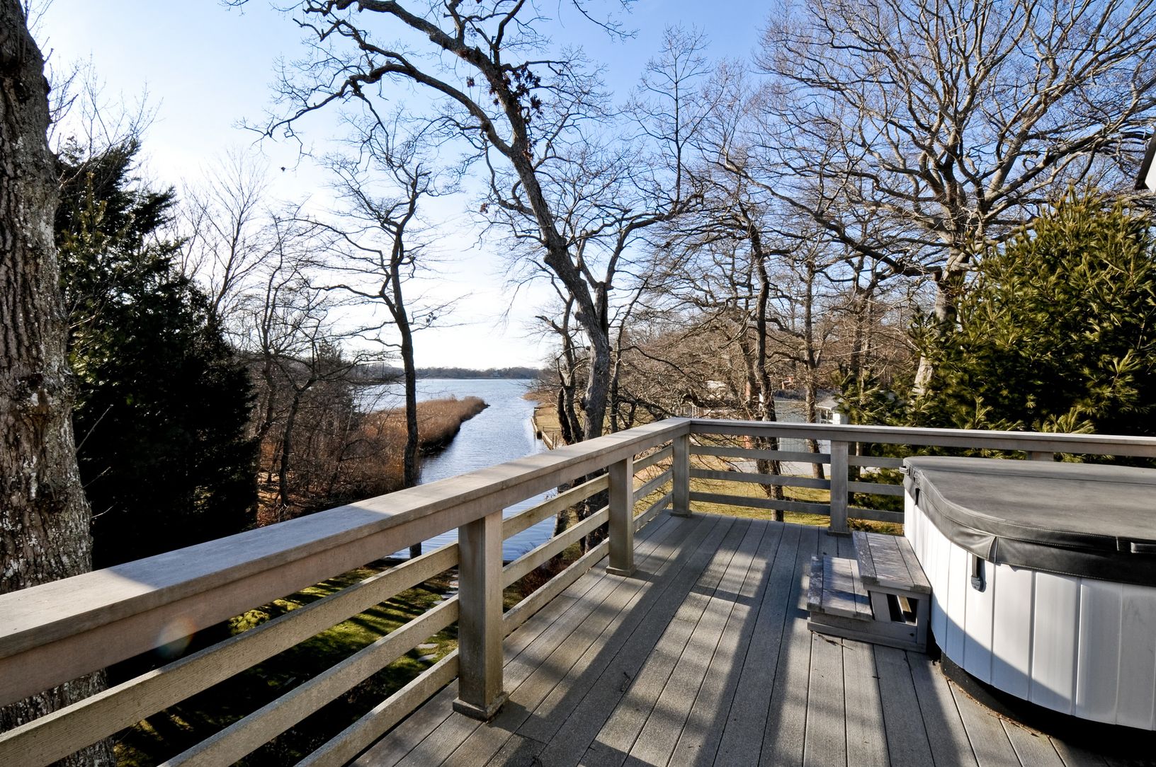 Southampton waterfront home, built in 2004 with views of Bullhead Bay, ready for you to move in! The property has a bulkheaded waterfront which opens out to the Bay. Across the street is a large track of land, owned by Southampton Town, that is preserved as open space with trails throughout. The house has a state of the art kitchen, a bright double height great room, dining room, 3 bedrooms, 2 baths, loft area and hot tub. Along with a wrap a