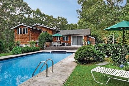 Sprawling three bedroom, four bath home thoughtfully situated on a shy half acre of property in East Hampton's Northwest Woods. Renovated and expanded throughout with over 2100 sq.ft of living space, the home boasts all modern amenities, one-car garage, as well an additional office-studio-guest wing with private entrance that is ideal as a separate guest quarters or a professional home office with waiting area. Add to that meticulous landscapi