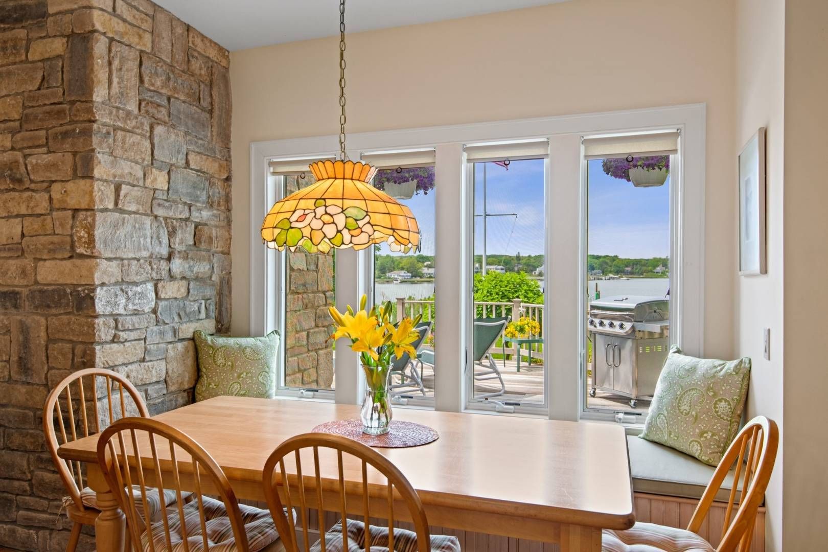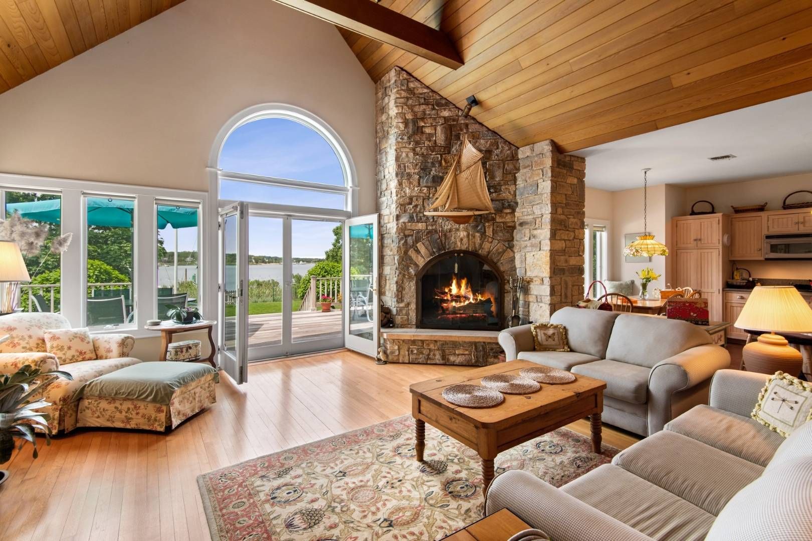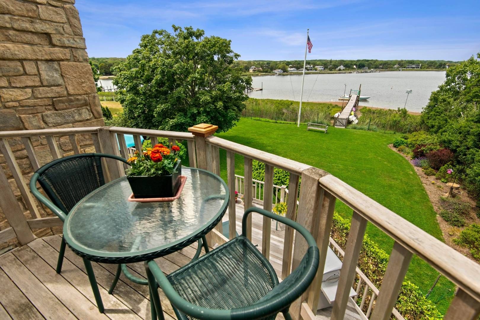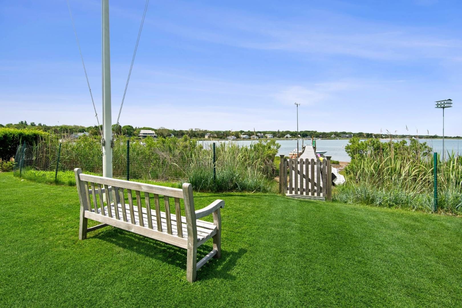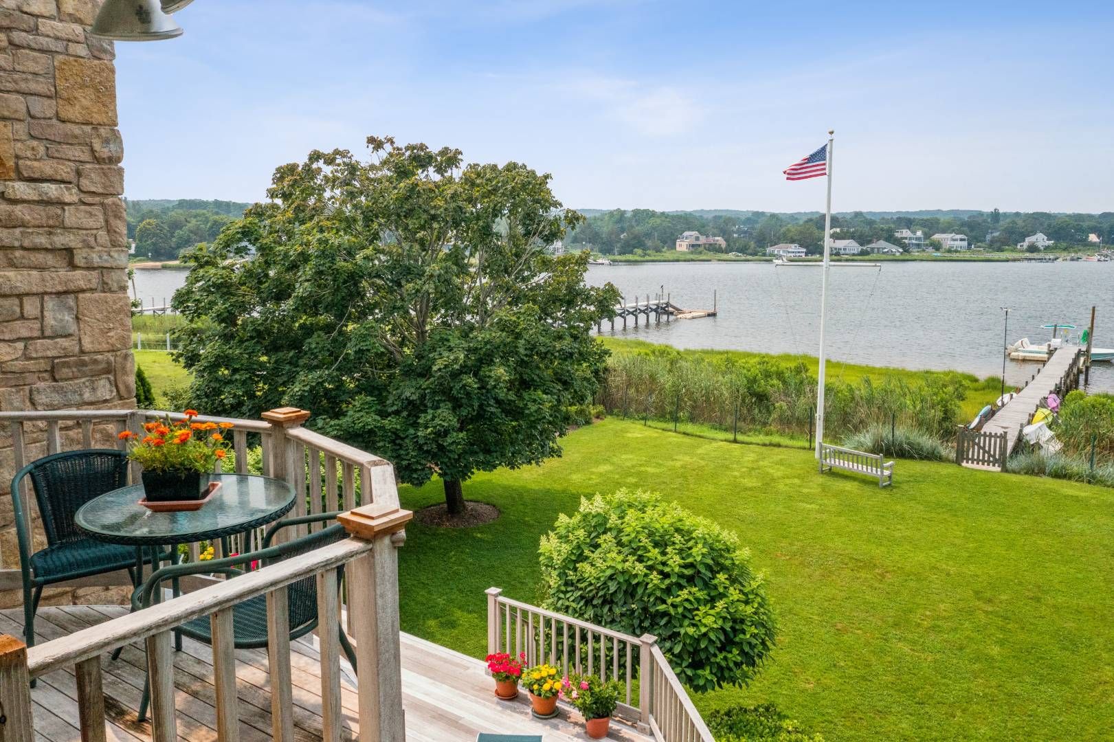 Located in Sag Harbor Village, this west facing property is quietly situated on Redwood's most desirable stretch, less than a mile to the heart of town. Beautifully landscaped with mature and manicured plantings down to the water's edge with a large lawn on the waterside for outdoor games. This three-bedroom, three-bathroom house with bonus room was custom built in 2004 with water views throughout, cathedral ceilings, wood-burning fireplace, e