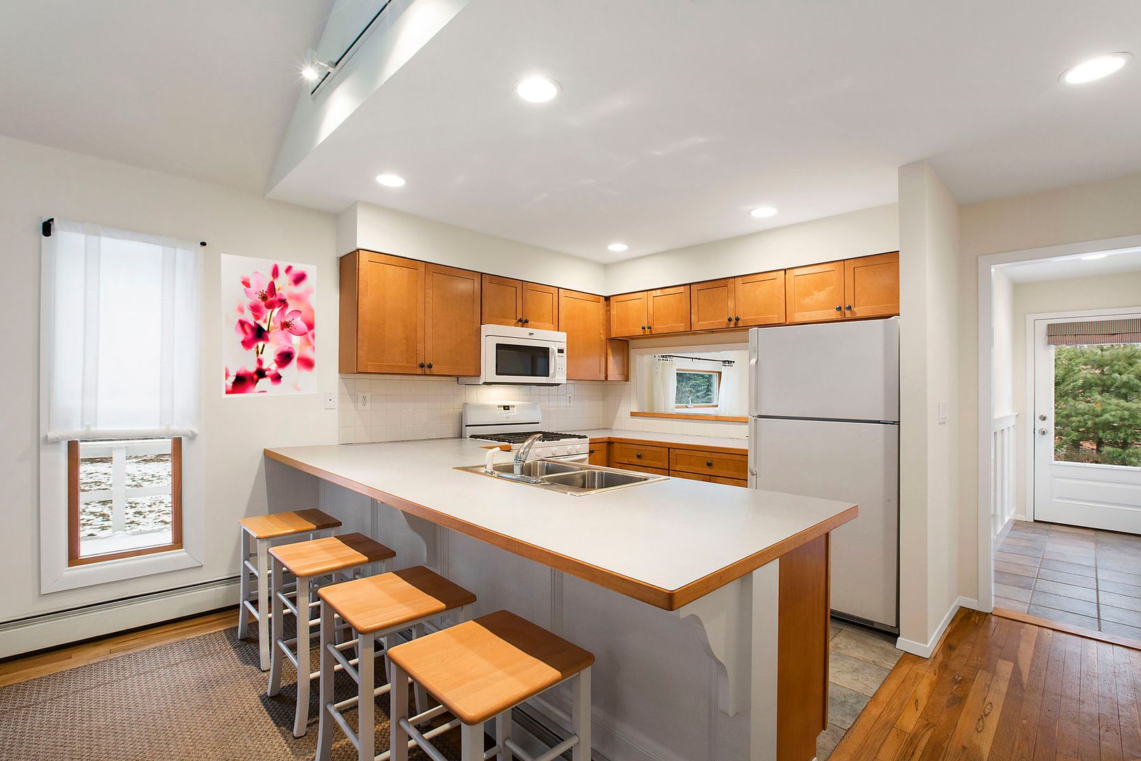 This charming contemporary is located on a quiet street in East Hampton's Springs area. Just freshly painted and ready to move in, this sweet two bedroom, two bath home is a perfect starter or a great weekend retreat. Large open kitchen and living area features a wood-burning brick fireplace, and sliders lead to beautifully landscaped (and fully irrigated) property. Decking also features a new retractable awning! Set on a shy half acre with ro
