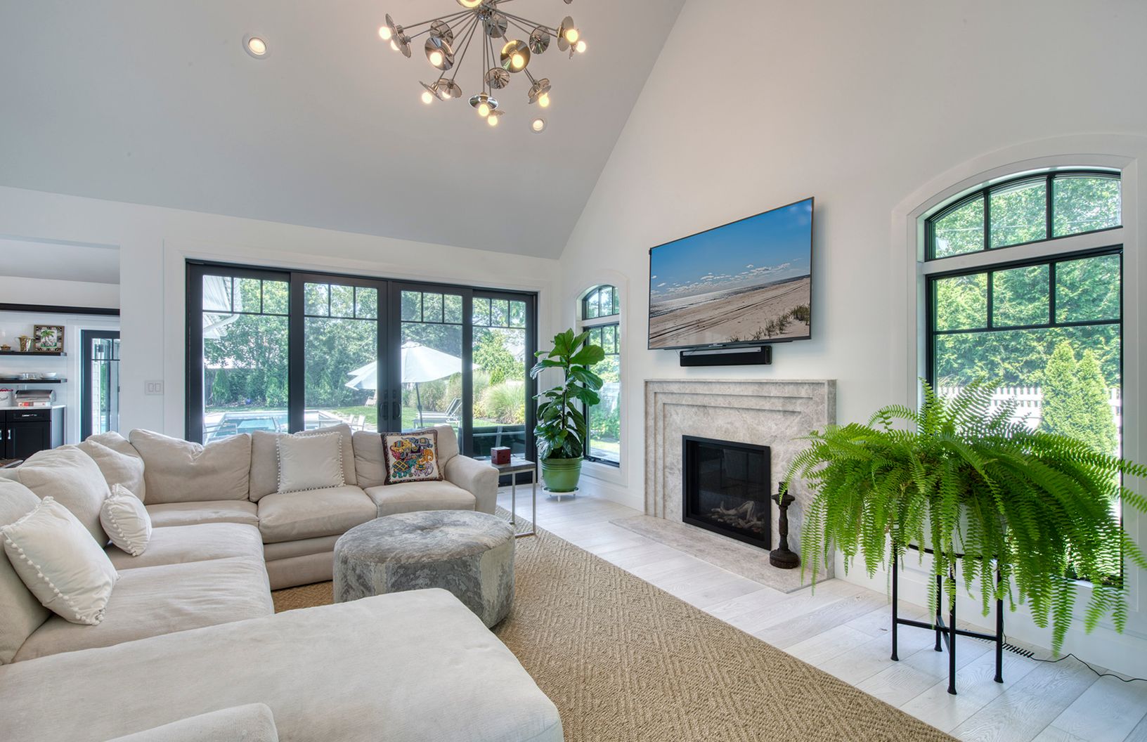 Near magnificent Atlantic Ocean beaches and the Quogue Beach Club along Dune Road, this spectacular estate sprawls across 0.62 +\- acre and provides 5 bedrooms, 5 full and 2 half bathrooms across 4,200 +\- sf. A welcoming foyer leads to a massive open-concept floor plan featuring soaring vaulted ceilings in the living room with a fireplace, a formal dining room, and a professional chef's kitchen with a large island for casual counter dining. T