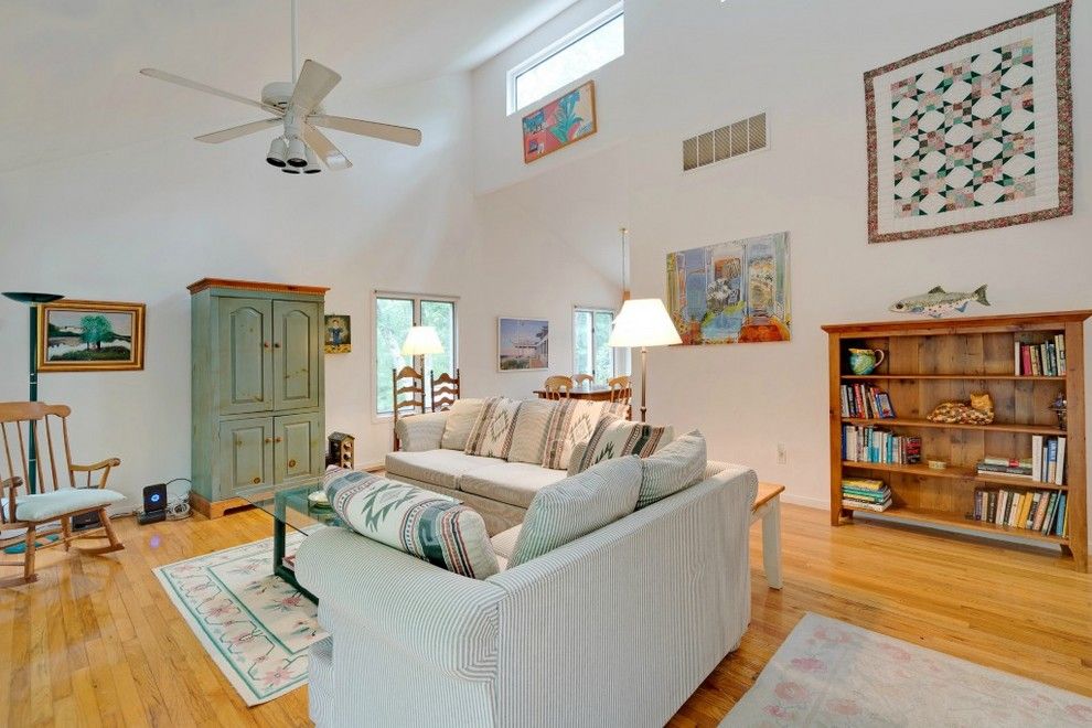 One level 3 bedroom/2 bath home with central air, a fireplace and a full basement in East Hampton Springs has vaulted ceilings in the living room, dining area and all three bedrooms. And the yard has two levels of decks and an outdoor shower. Room for a pool - quiet street with access to both Three Mile Harbor and Springs Fireplace. Great Value.