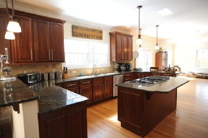 This beautiful Hamptons home features five bedrooms and three and a half baths, and is situated on a gorgeous shy acre parcel abutting a reserve. This shingle traditional truly offers great value with a terrific open floor plan, hardwood flooring and nine-foot ceilings throughout the house. The high-end chefs kitchen features a center island, granite countertops and stainless steel appliances, including a Jenn-Air gas range-top with grill, dou