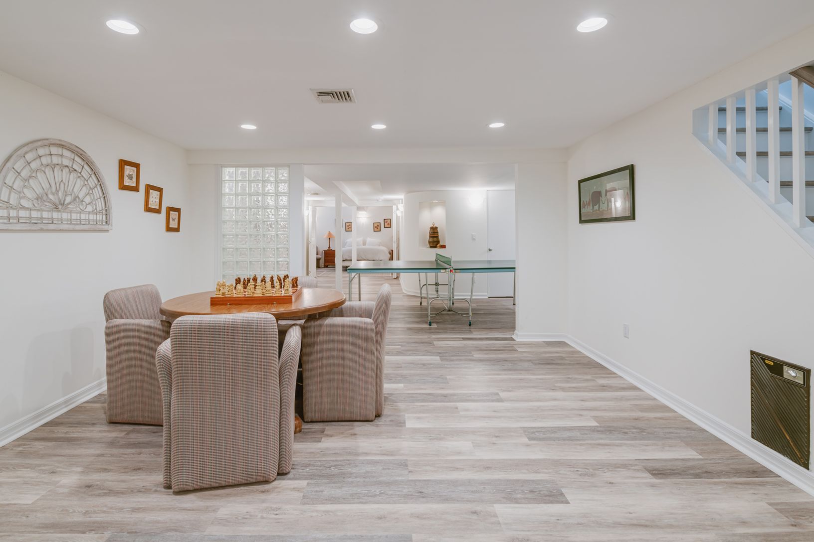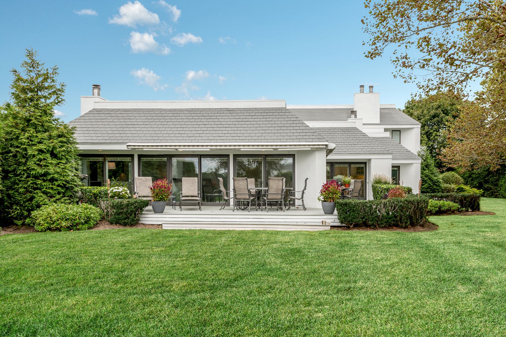 Situated in Water Mill's sought-after bayfront community, Mecox Landing, this spacious, chic and newly, totally renovated and pristine five bedroom, four and a half bath condo offers 4,200+/- sq. ft. of stylish living space. The ranch model is the largest unit at Mecox Landing and the best seller. Enter to light-filled living areas with glass doors to an expansive wraparound deck from the living room with fireplace, dining area and beautiful k
