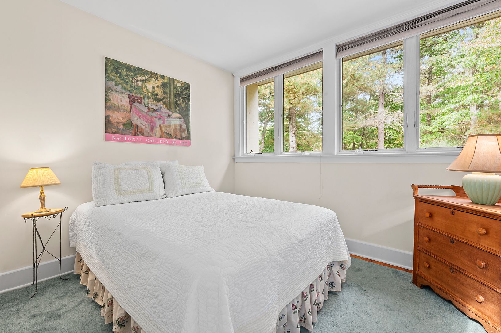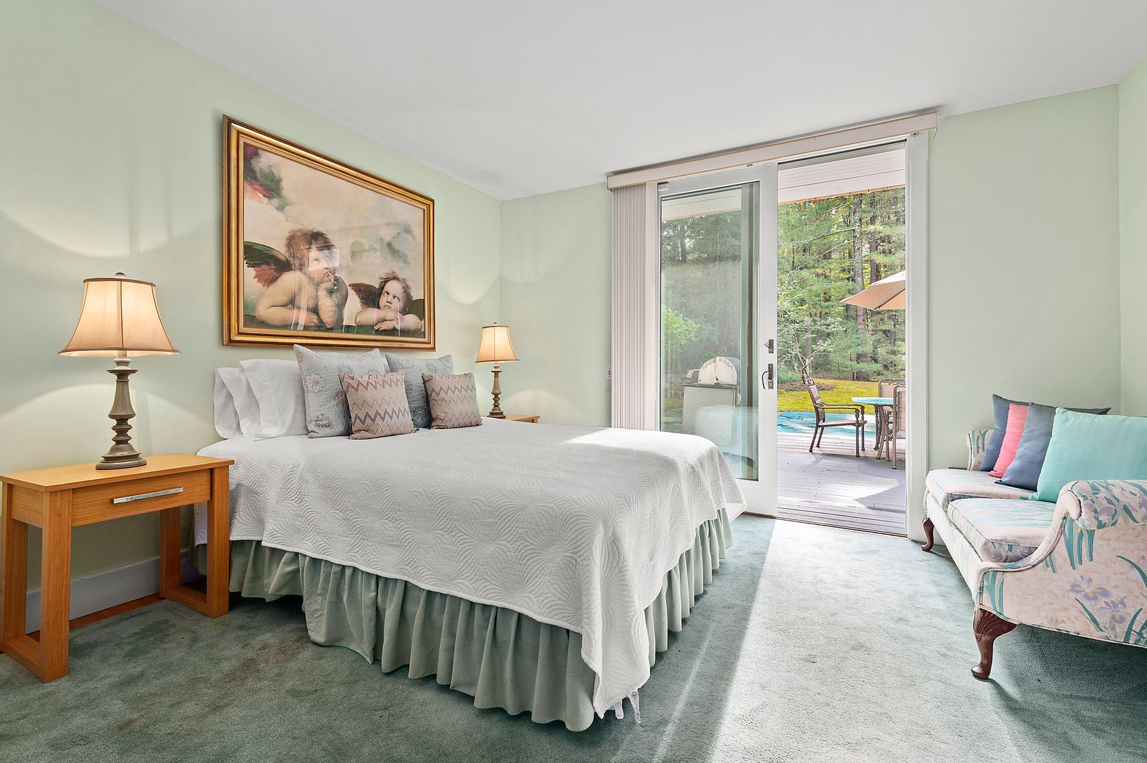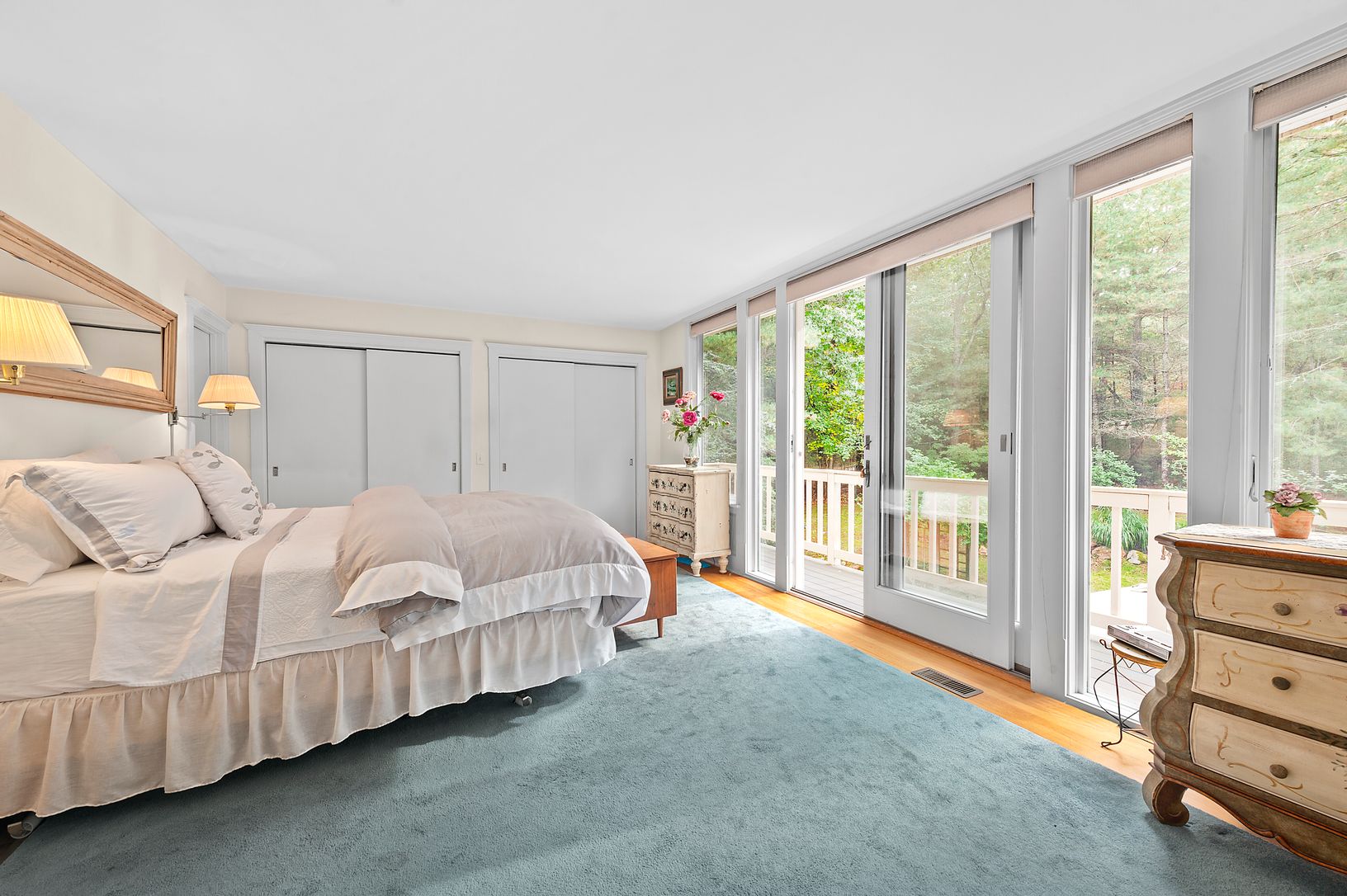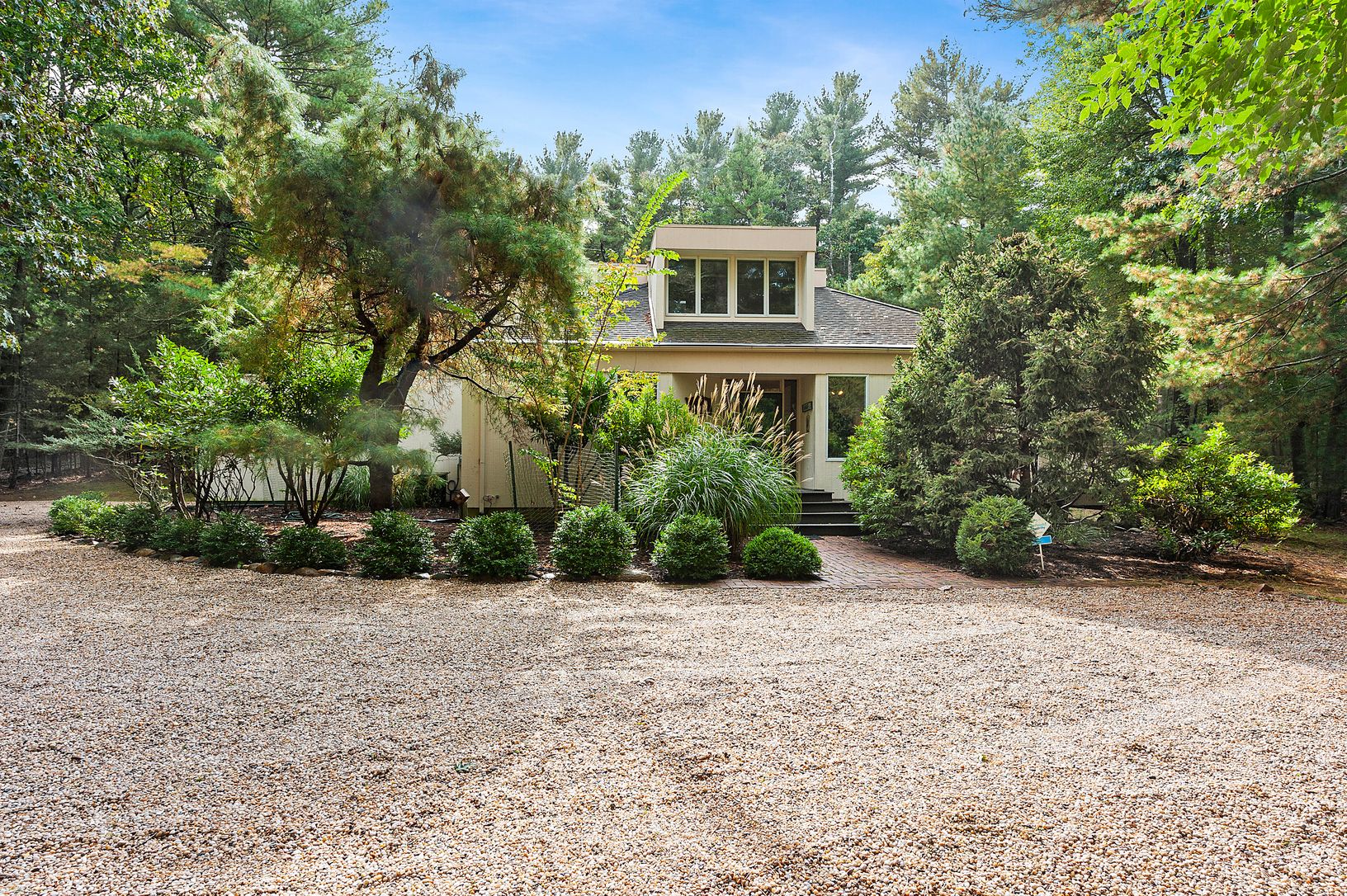 Nestled on a private cul de sac with almost 2 acres of land in East Hamptons prestigious Northwest Woods, sits this four bedroom, three full bath home. The main floor boasts a generous open floor plan, spacious foyer and Great room with double height ceilings, wood burning fireplace, dining area, open kitchen with granite counters, stainless appliances and plenty of outdoor light . Two guest bedrooms that share a bathroom are located on the