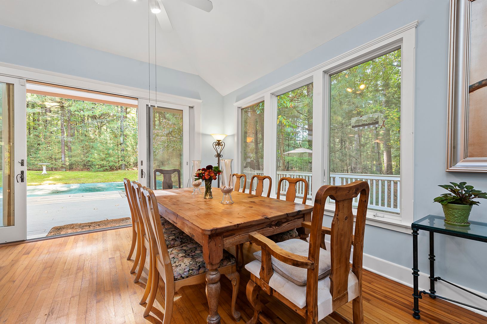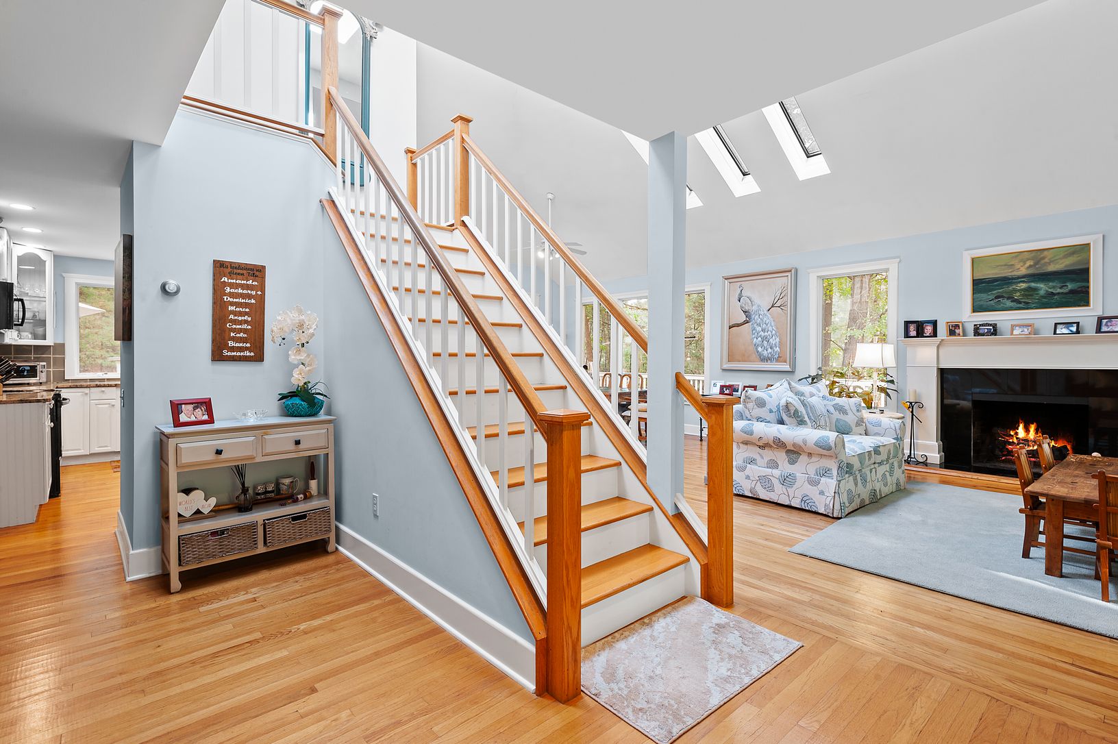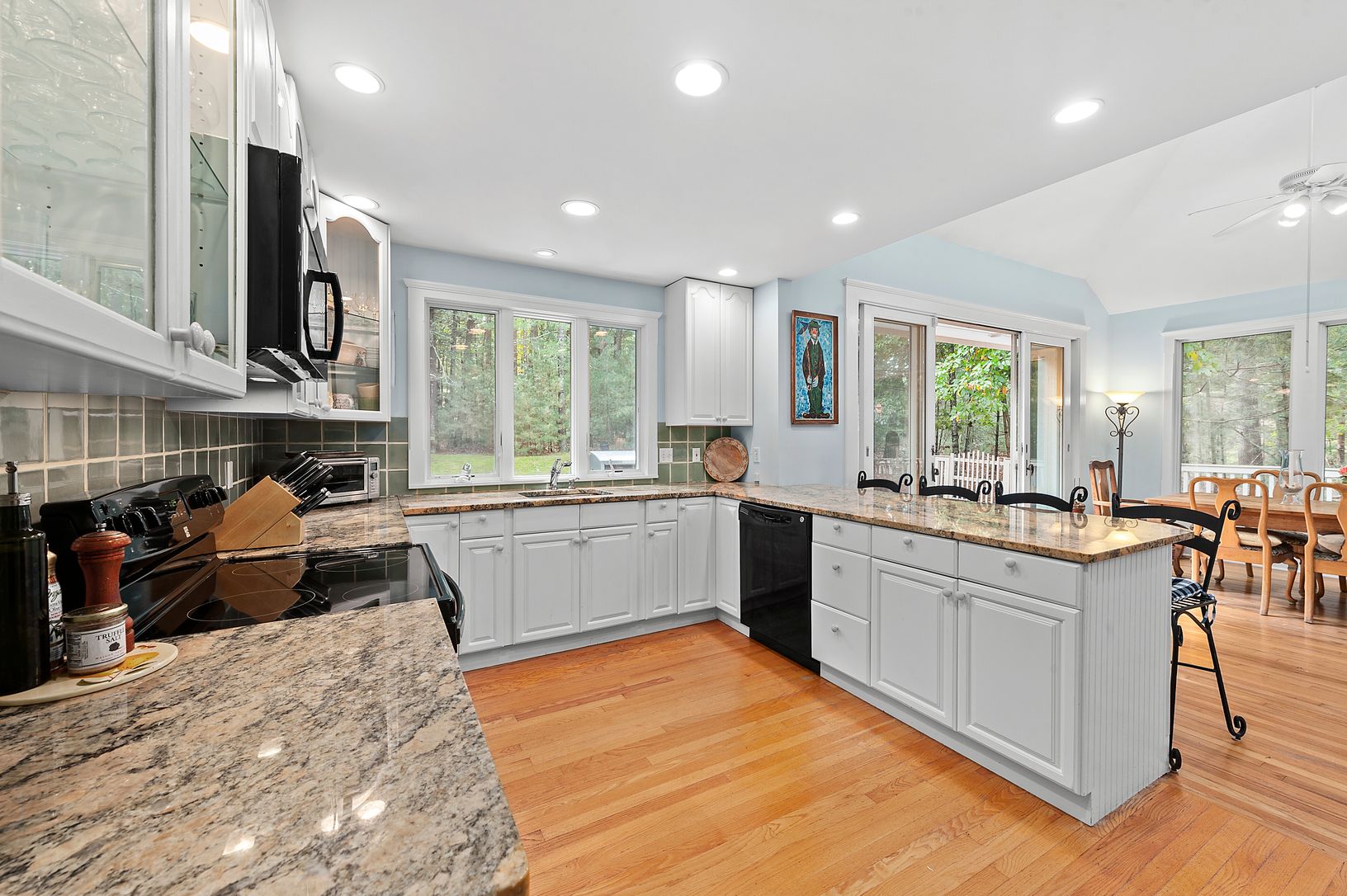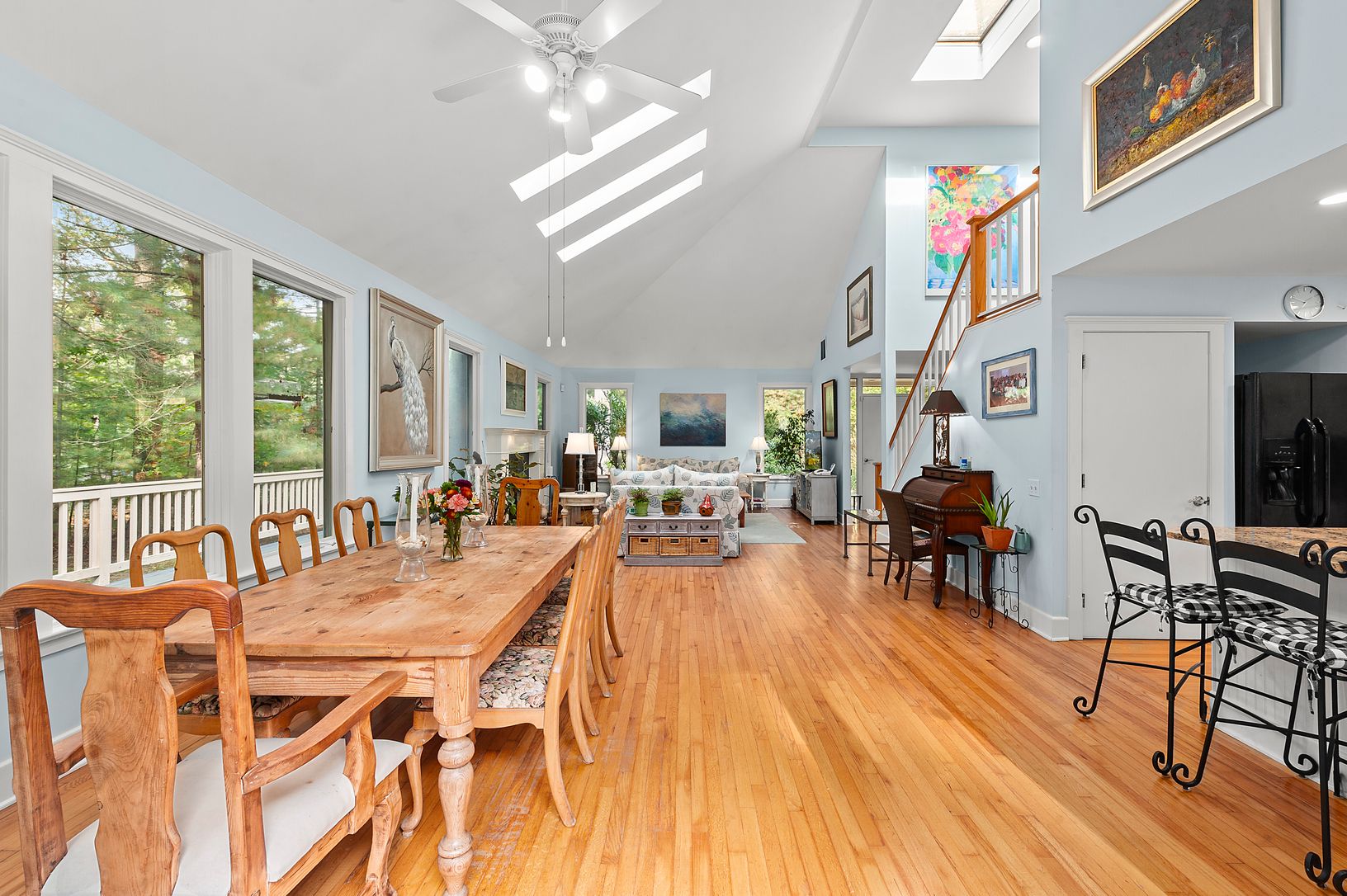 Nestled on a private cul de sac with almost 2 acres of land in East Hamptons prestigious Northwest Woods, sits this four bedroom, three full bath home. The main floor boasts a generous open floor plan, spacious foyer and Great room with double height ceilings, wood burning fireplace, dining area, open kitchen with granite counters, stainless appliances and plenty of outdoor light . Two guest bedrooms that share a bathroom are located on the