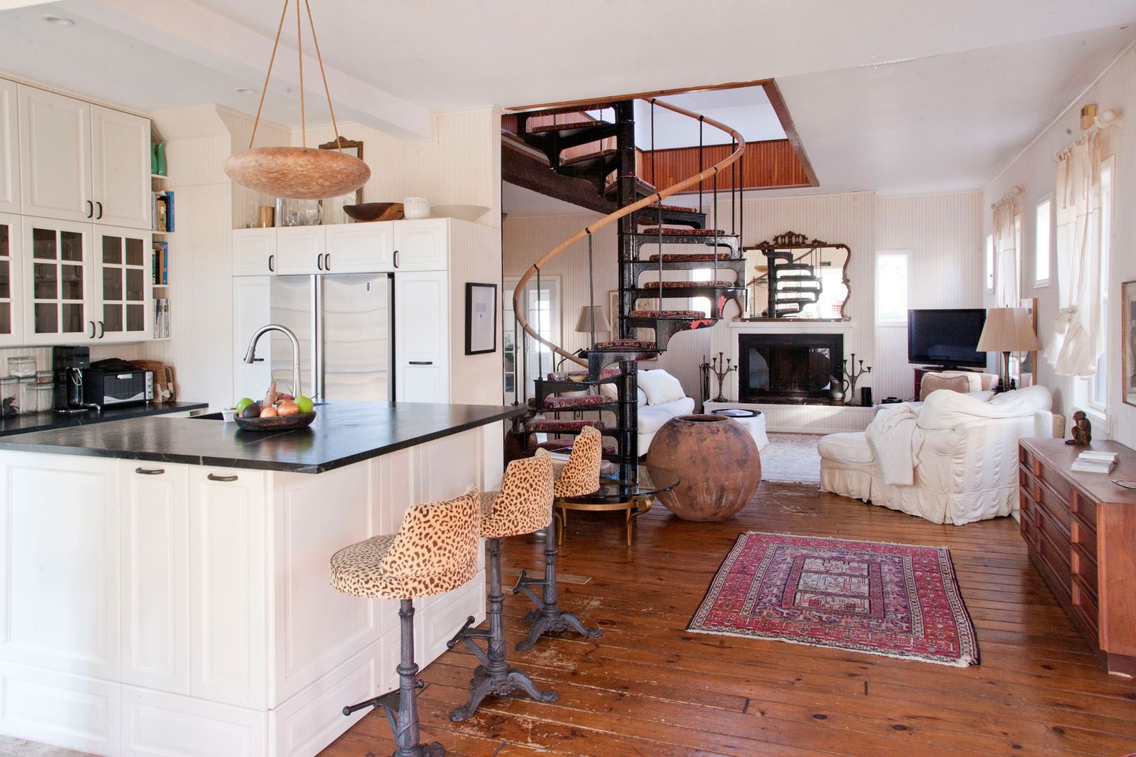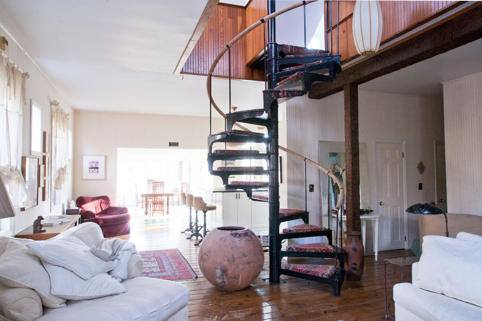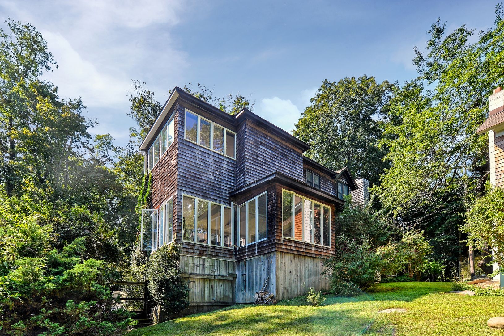 Located in the estate section of Dering Harbor Village, the smallest incorporated village in the United States, this restored turn of the century carriage house is tucked off the road and offers privacy with slices of views of Dering Harbor and a saltwater inlet. References to the original carriage house still remain, including double height ceilings in the living room, bead board, tongue-in-groove floorboards and the feeling of space and ligh