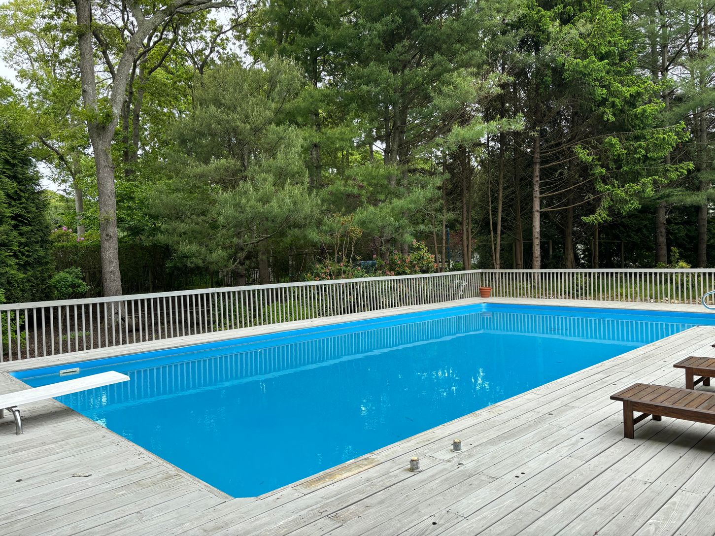At the end of a cul de sac is this charming 3 bedroom, 3 bathroom home with fenced pool and fenced yard. Enjoy easy living on 1 floor. Located in the desirable Settler's Landing area of East Hampton, the private bay beach is just around the corner. Sammy's Beach is a mile away, and the towns of East Hampton and Sag Harbor are a short drive away. Light streams in through skylights and bay windows into an open concept kitchen, living room and di
