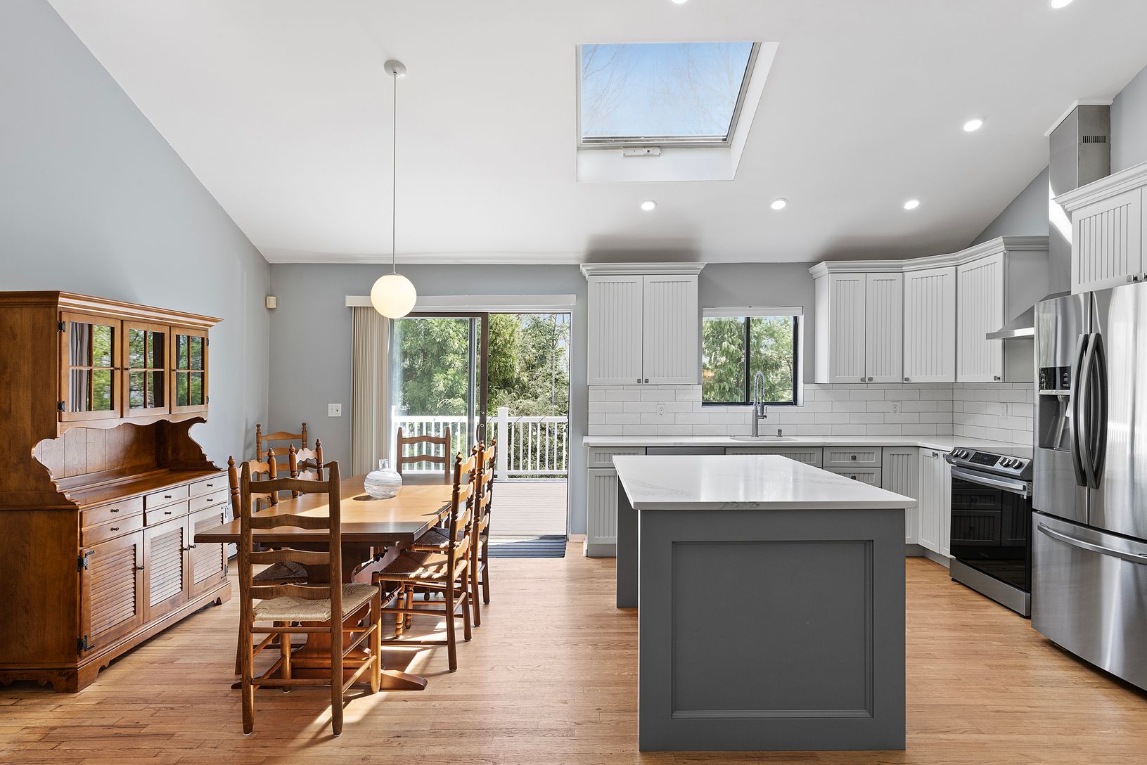Situated on a .96 +/- acre with ample room for expansion, this beautifully renovated 1,793+/- sq ft raised ranch style home is tucked away at the end of a private cul de sac and sheltered by established landscaping. Offering 3 bedrooms and 2 full baths throughout its thoughtfully laid out two levels, this home is completely turn-key. The main level has an open floor plan with vaulted 12 ft ceilings and seamlessly incorporates a recently update