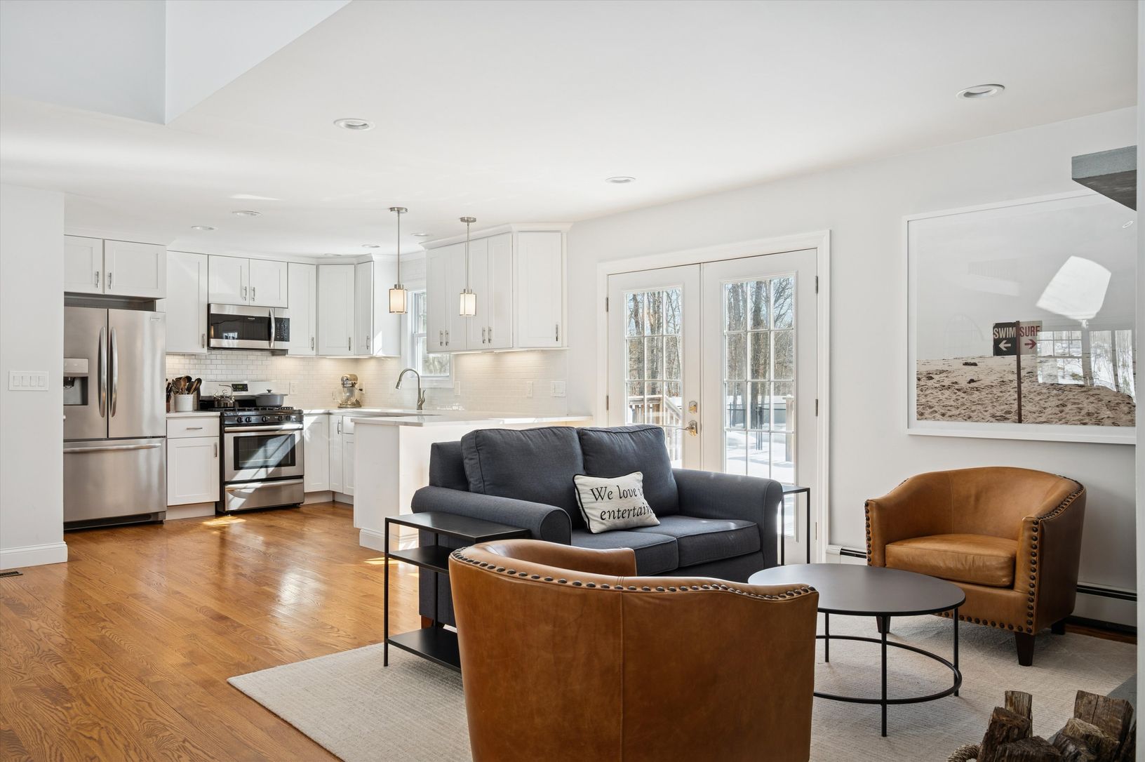 Tucked away on a peaceful acre in Hampton Bays, 4 Stuart Court offers the perfect blend of space, privacy, and classic Hamptons summer living. This expansive three-bedroom, three-bath home is designed for comfortable living and effortless summer entertaining. Inside, the home features generous living spaces designed for both relaxation and entertaining. The open kitchen is fully stocked for convenience and flows seamlessly into the main living