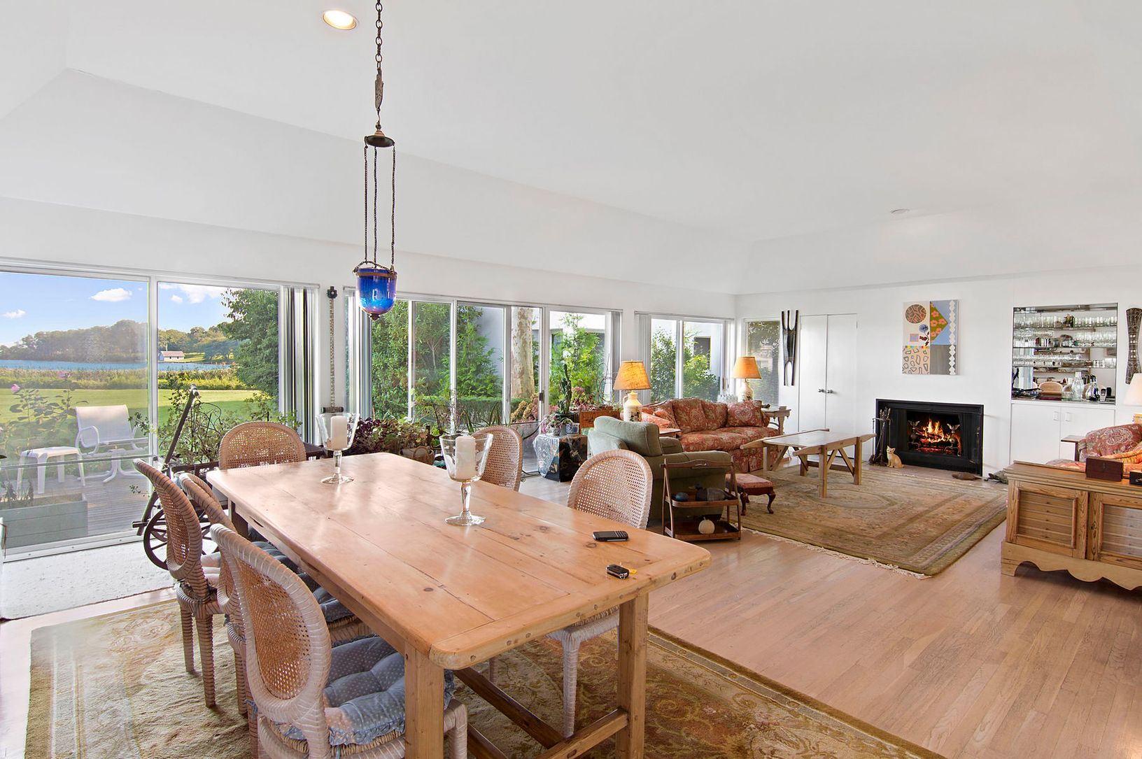 Rarely does a one level unit directly on Mecox Bay come on the market offering an opportunity to make it yours! It has about 2300 square feet of light and bright living space. Start with a covered entry and double door foyer then large living room dining room with lots of glass doors to the outdoor deck with a big waterview vista. Great to entertain on the deck or lovely green lawn up right up to the dock. There is a good size kitchen with out