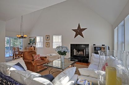 Located between Amagansett and East Hampton in a private residential area. This four bedroom plus a den and two bath home is minutes from ocean beaches, tennis courts, playgrounds and horseback riding. Surrounded by a beautiful garden, enjoy the deck and pool with an outdoor shower. The open kitchen, features a new Bosch dishwasher and range which is adjacent to the dining area . A large living room with high ceilings allow for lots of light.