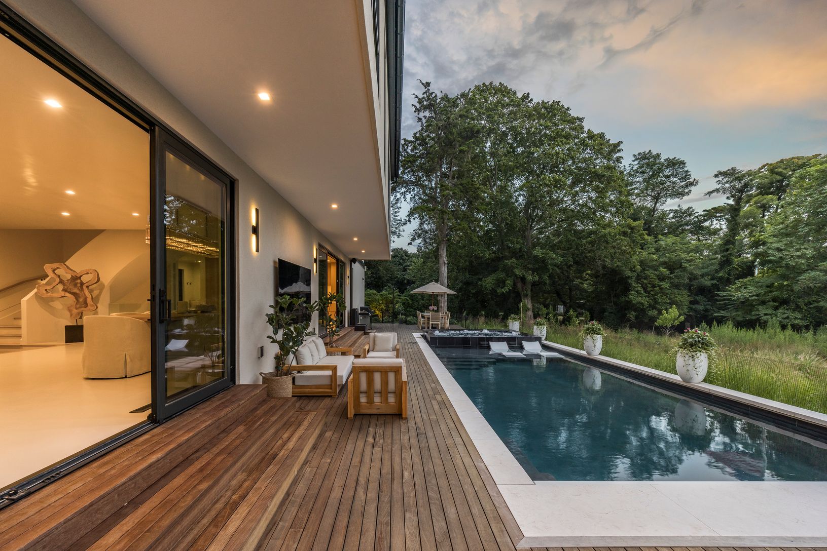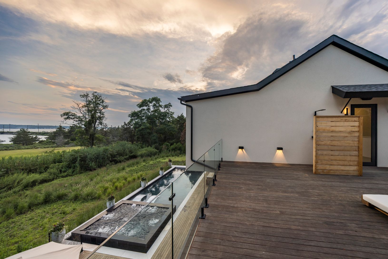 Enjoy unparalleled luxury and sophistication at this newly constructed modern masterpiece offering stunning vistas of breathtaking sunrises and sunsets overlooking the bay and harbor. Located just around the corner from Long Beach and 1 mile to vibrant Sag Harbor Village, this home invites you to indulge in a boutique hotel lifestyle enhanced by exquisite interiors. The expansive open floor plan is designed for seamless entertaining, featuring