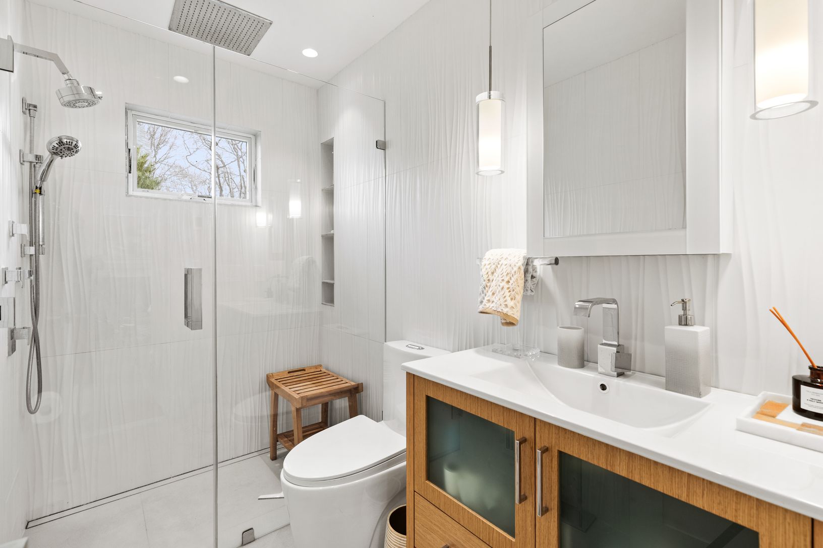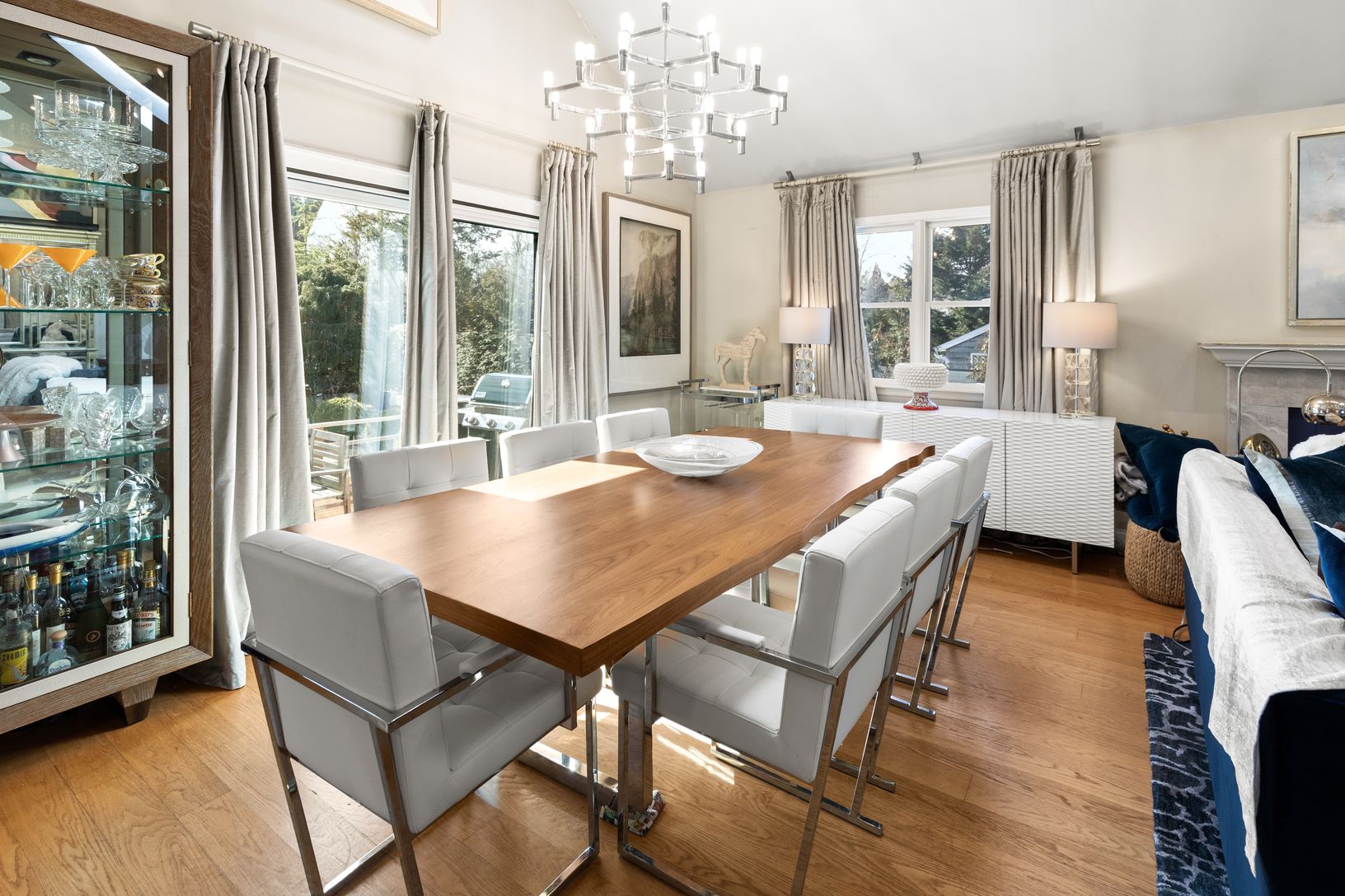Make this bright, relaxing home your Hamptons getaway. Stylish contemporary furnishings, vaulted living room, large open eat-in kitchen plus dining table that seats 8. Three bedrooms with superb restful beds and two newly-renovated baths.