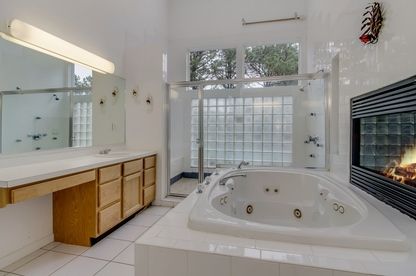 This 5-bedroom, 5 1/2-bath home features an open floor plan, with a large foyer, airy living room complete with wood-burning fireplace connected to a light-drenched dining area. The kitchen is stocked with gourmet appliances (even a built-in espresso machine) and the master bedroom has a fireplace, a separate den area and a spectacular bathroom with a jacuzzi tub and fireplace. Two of the other bedrooms are also en-suite. Outdoors, there's a b