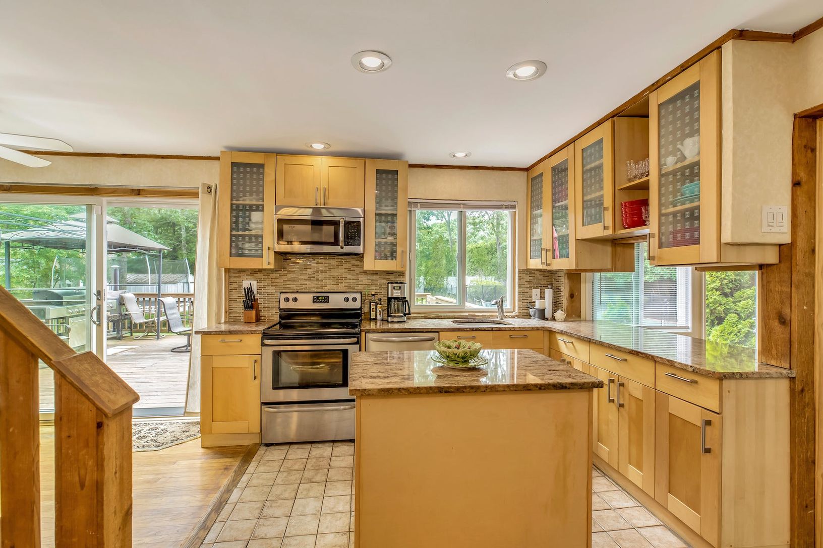 Furnished Home in Hampton Hills Association with private beach, park and boat mooring rights. This oversized beauty has it all with five bedrooms, four bathrooms, living room, dining room, chefs kitchen, den and added bonus of basement with walk out entrance mother/daughter or legal accessory apartment possibilities. If you love the outdoors, cool off in the in-ground pool surrounded by lush landscaping, have a barbecue with the efficient outd