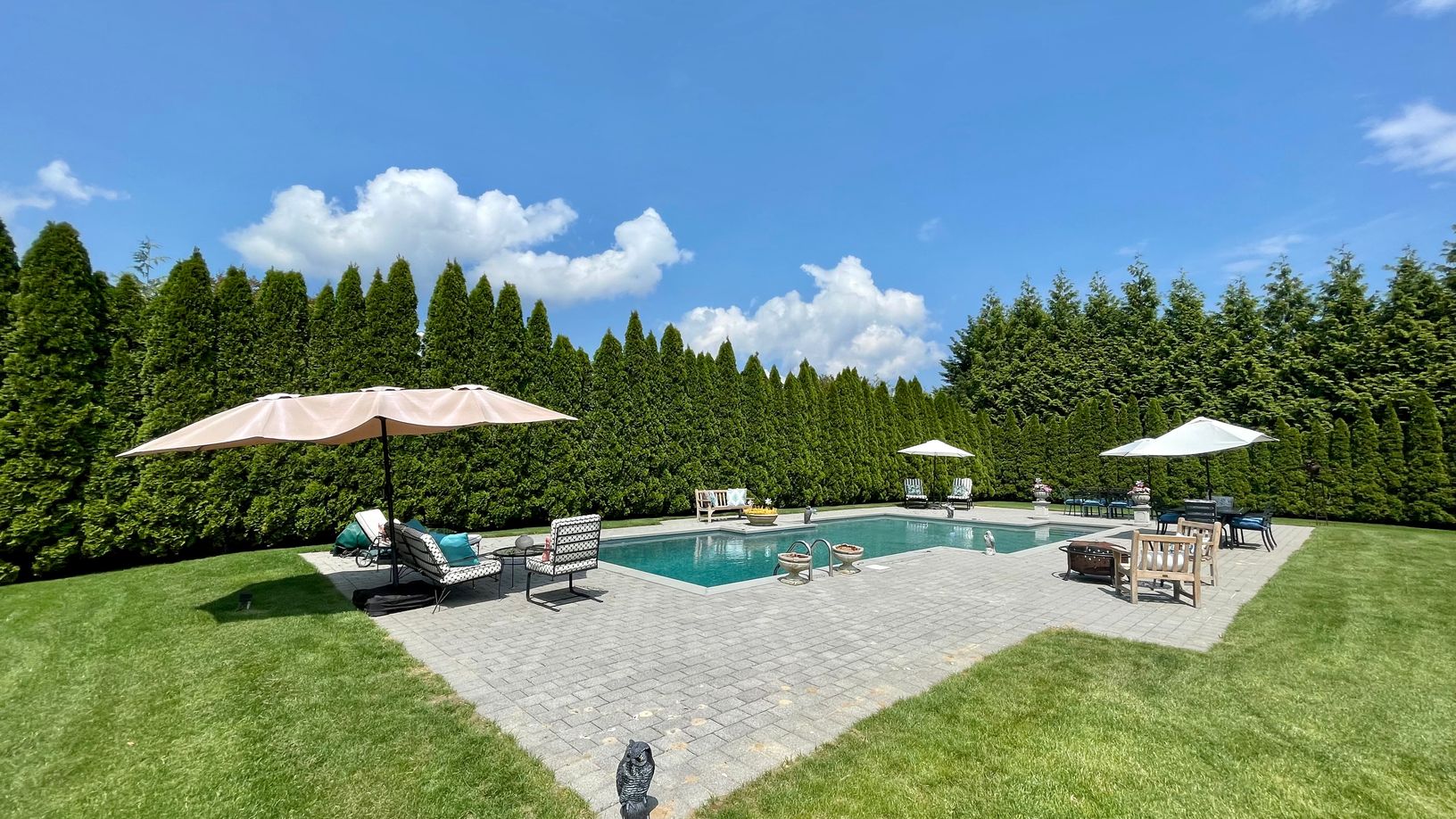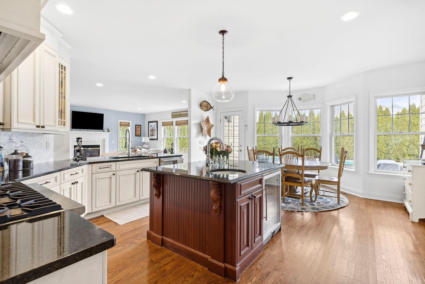 Gracious 5-bedroom, 4.5-bath home offers a heated gunite pool and beautiful yard. Open floor plan lends itself to summer relaxation and entertaining.