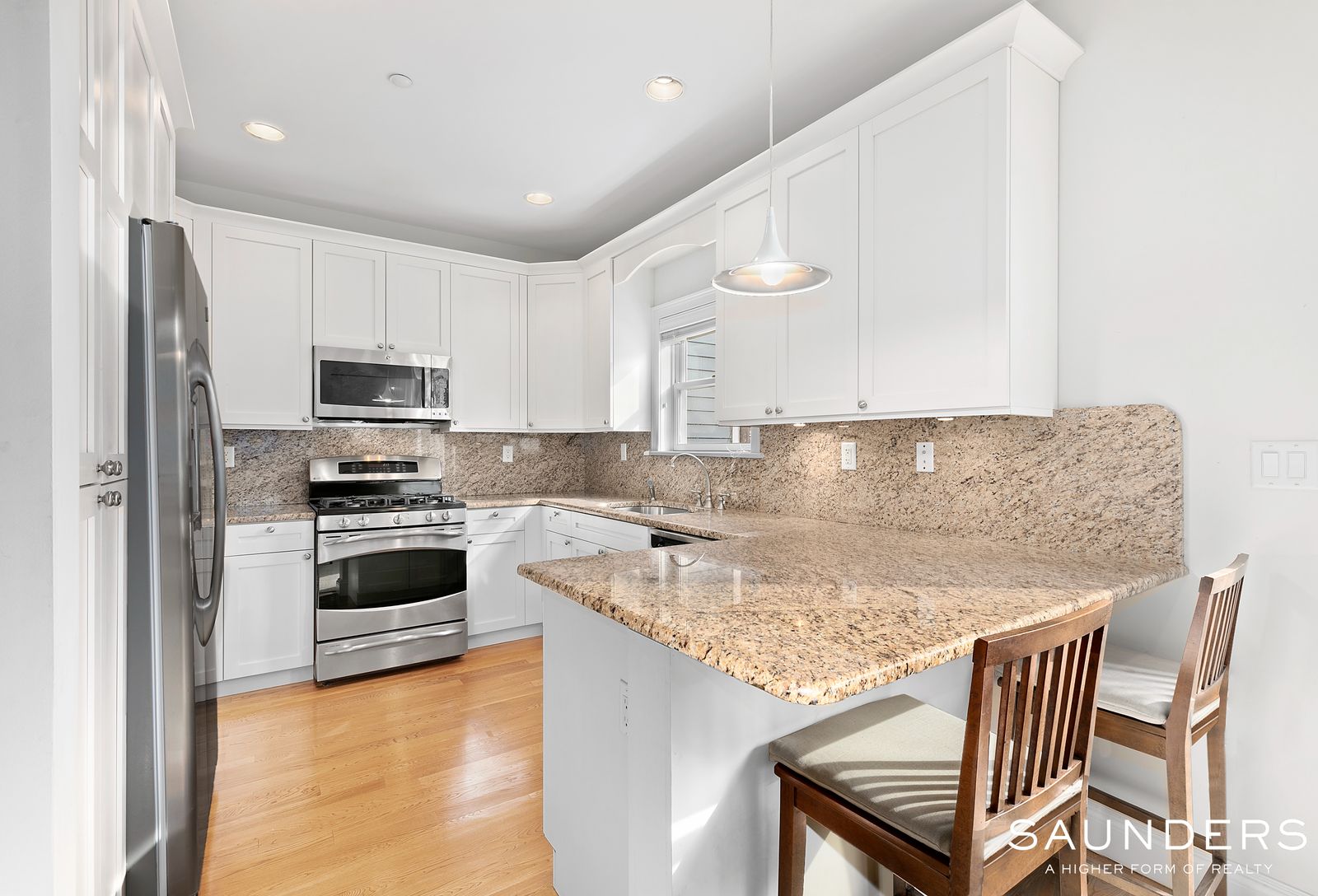 This centrally located, three bedroom, three bath condo in The Courtyards is just minutes from Southampton and Sag Harbor villages. Community features include pool, two playgrounds, and a basketball court. This home has stainless appliances, like new hardwood floors and an open spacious layout with a full bath on the main level and three bedrooms and two baths on the second level. The master suite has a large ensuite bath and a large walk-in