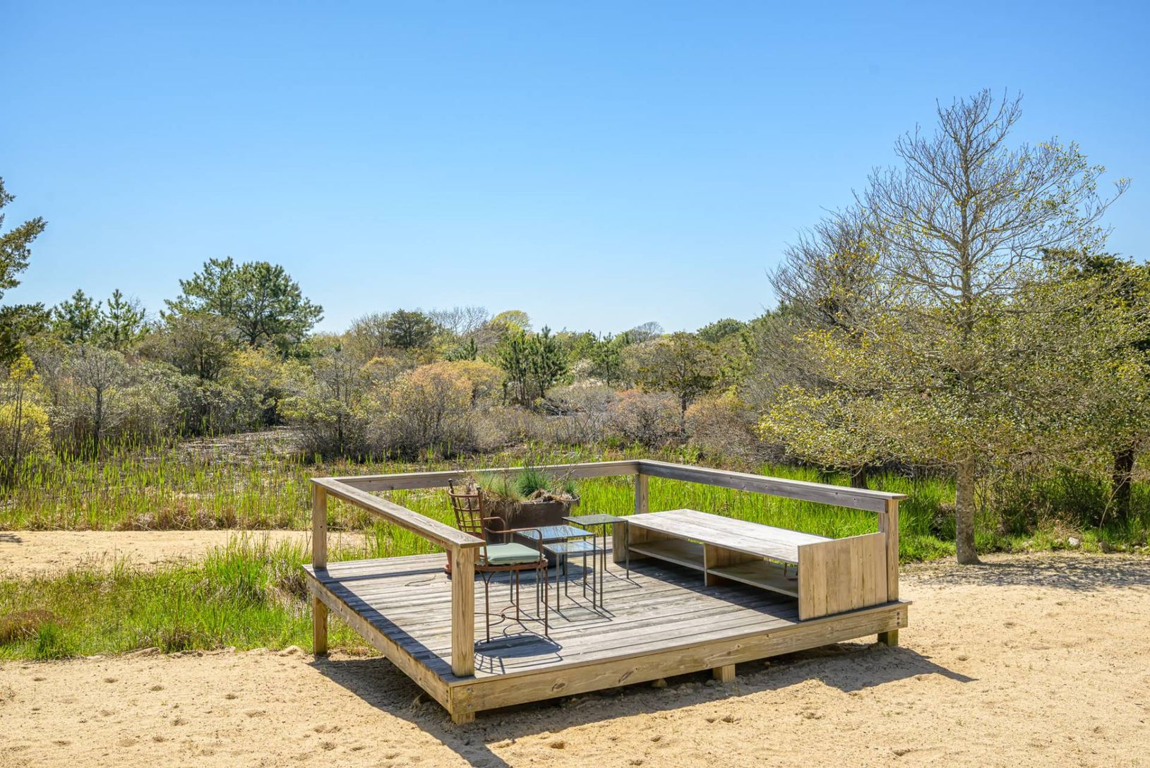 Located down the block from an exquisite ocean beach, this newly renovated home is the quintessential Amagansett beach cottage retreat. Owned by world- renowned painter and sculptor, Jennifer Bartlett, the home is surrounded by the inspirational natural beauty of the Amagansett Dunes area. Light streams into the home's double height living room from a multitude of beautiful skylights. The new modern gourmet kitchen and dining area is the perfe