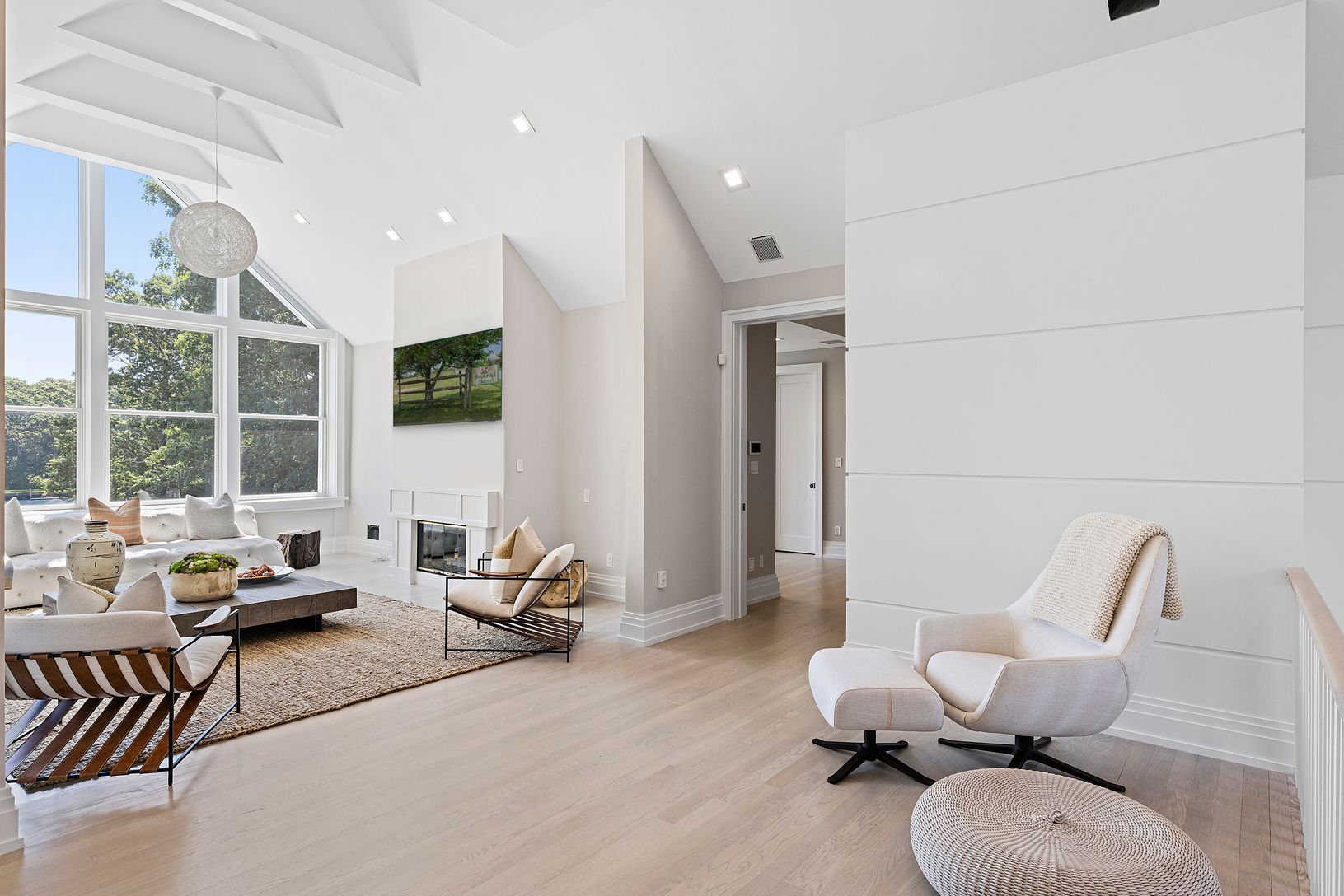 Waterfront Post Mod dramatic Foyer. magnificent staircase ,soaring ceilings. 6 BR, 7 Bath, 2 powder rm, all beautifully finished. A Huge Formal Living room with F/P, Gourmet kitchen F/DR, Family Room, Magnificent Master Bedroom w/ Fireplace and master bath. There is a 2nd floor Sitting Room with Fireplace. The additional 2000 Sq. Ft. Entertainment Complex features a AMF bowling alley, billiard rm, gym, movie theater, Heated Gunite pool, kiddy
