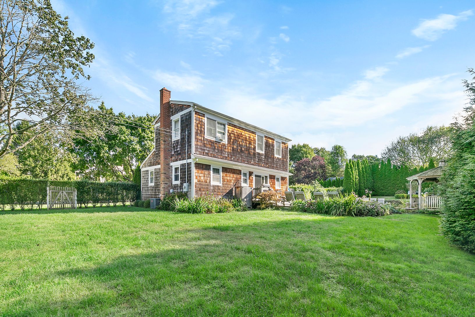 Beautiful designer renovated Southampton Village cedar-shake home all set on shy half-acre lot featuring four bedrooms, two bathrooms, living area and sunny eat-in kitchen that opens to wonderful outside area complete with heated pool, outdoor shower and gazebo with electric. The grounds are completely hedged in with over 100 new trees and shrubs. Additional upgrades are central air conditioning system, alarm, all new lighting and fixtures an
