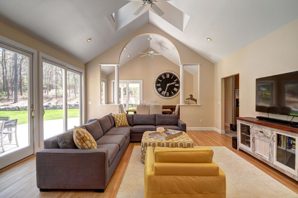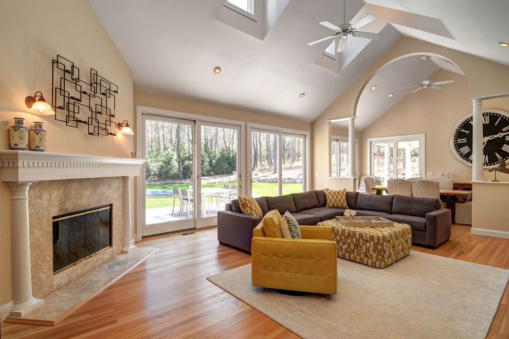 A pristine open floor plan highlights this 5097 sq.ft. post modern. High ceilings in the large great room accent a formal living room, which enjoys a wood-burning fireplace and is separated by an archway with handsome columns to the formal dining room. There is another gas fireplace for cozy evenings in the first-floor master bedroom suite, which is one of a total of 6 bedrooms plus a den with double egress (4 bedrooms are en-suite, plus 2 are