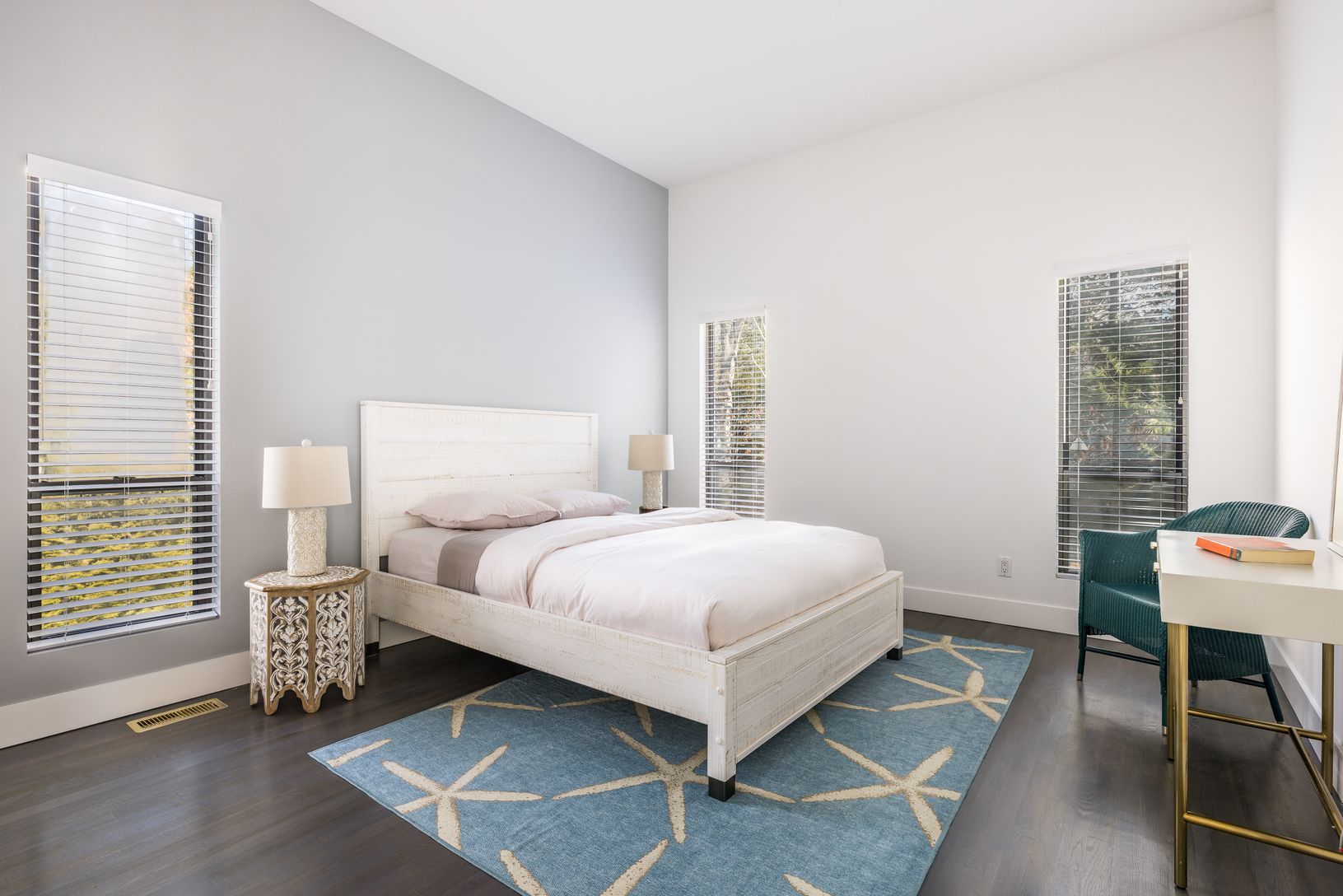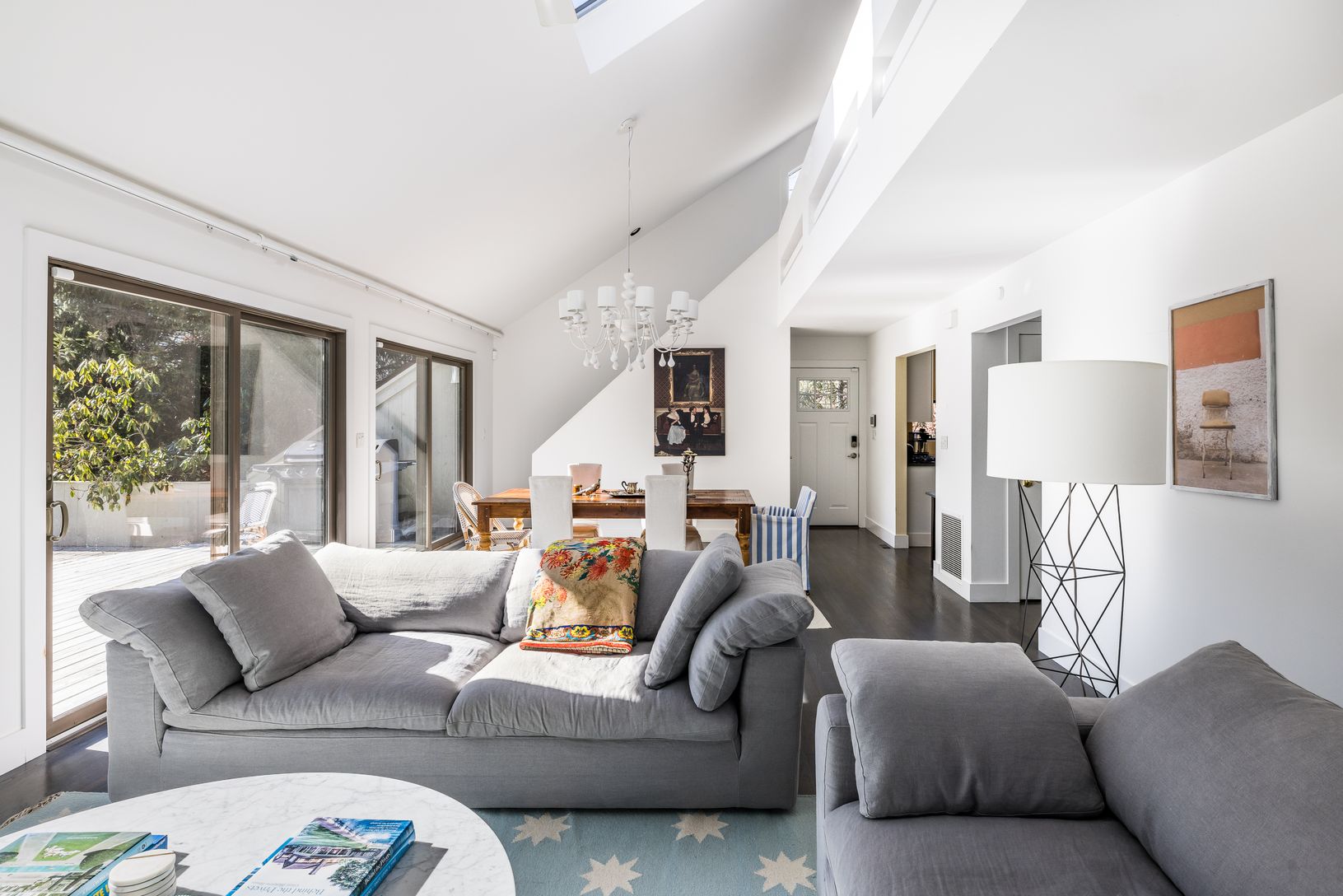 This stylish and renovated three bedroom, three bathroom contemporary home offers everything you'll need for a relaxing summer getaway. Featuring an airy open floor plan, the sun-drenched living and dining area with high ceilings and wood-burning fireplace opens onto the large deck leading right to the 20x40 heated pool and outdoor shower for seamless al fresco living. The beautifully renovated kitchen is equipped for all of your culinary need