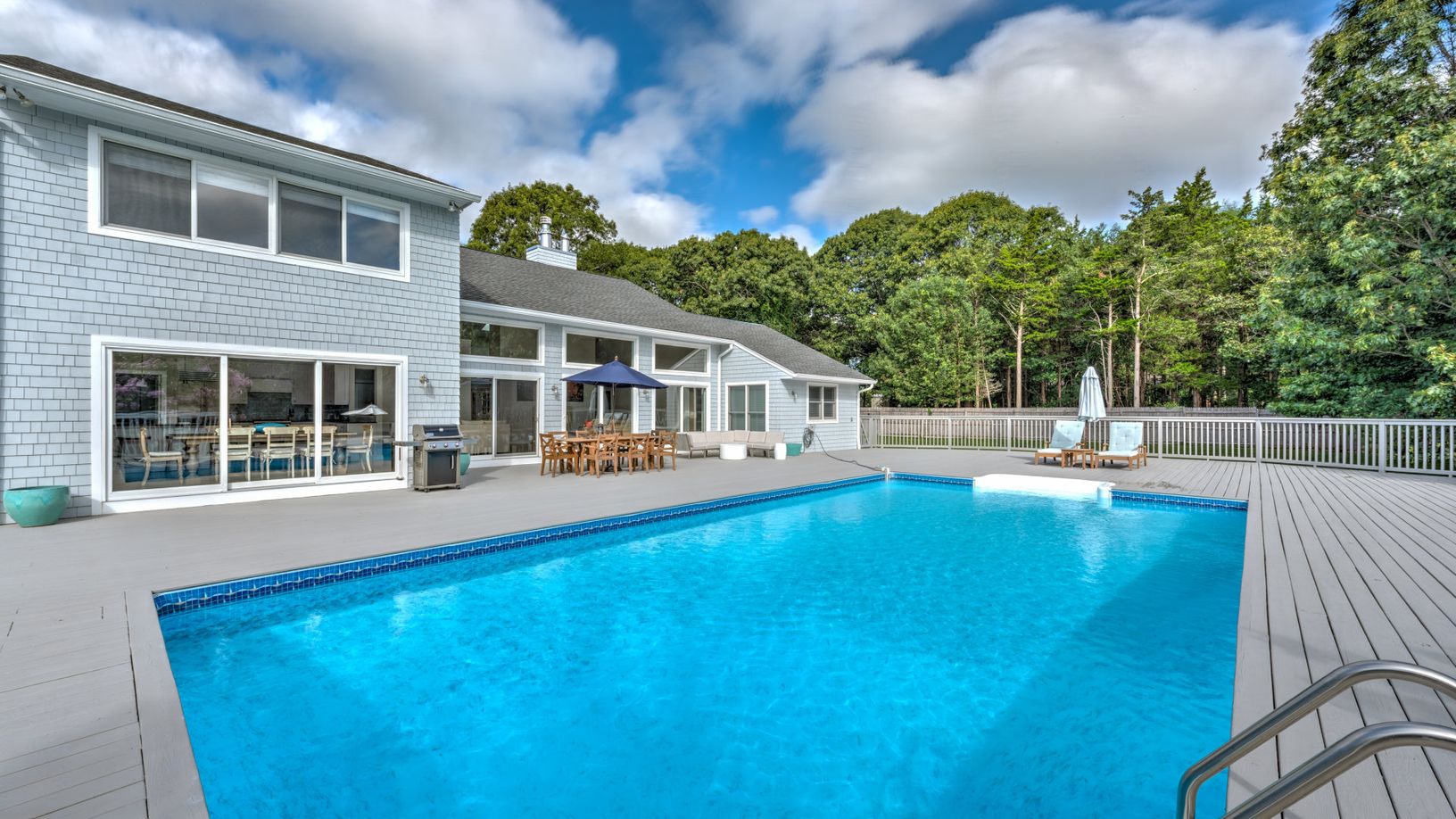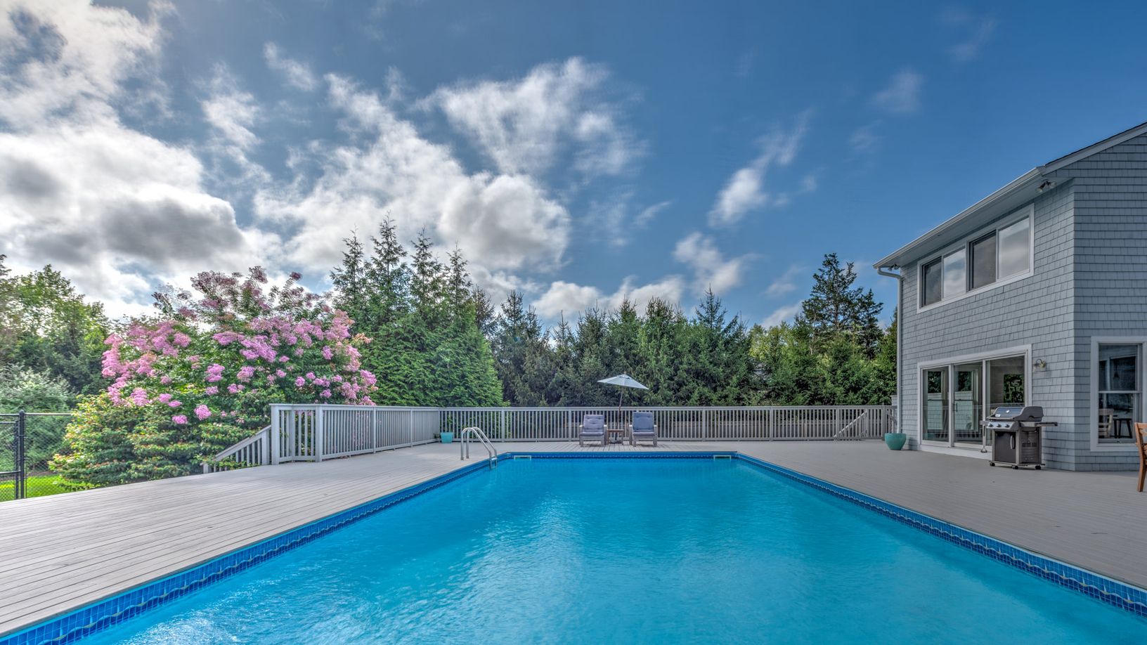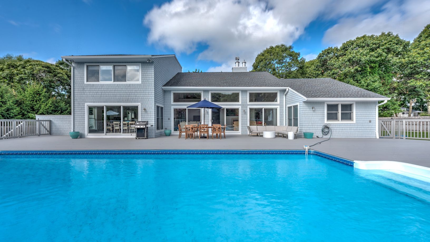 This newly renovated secluded modern home is the ultimate Hamptons getaway. As you walk into the home you'll find a beautifully open and airy living and dining area with new kitchen appliances and sleek black stone countertops. Guests can lounge out on the three oversized couches that overlook the expansive pool deck. Want to