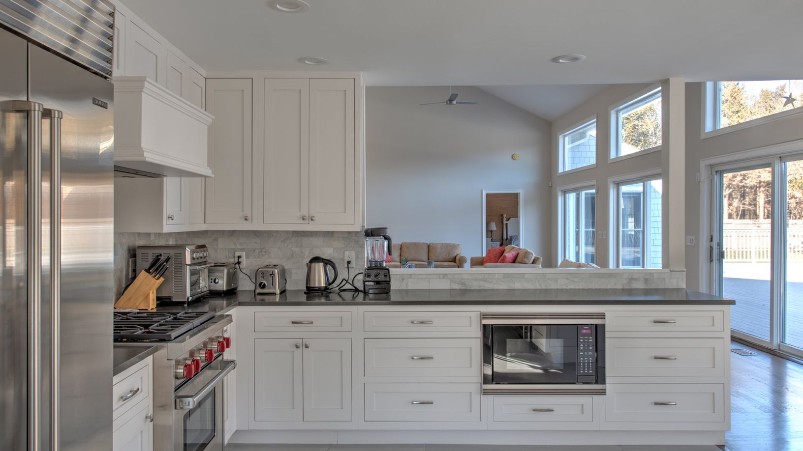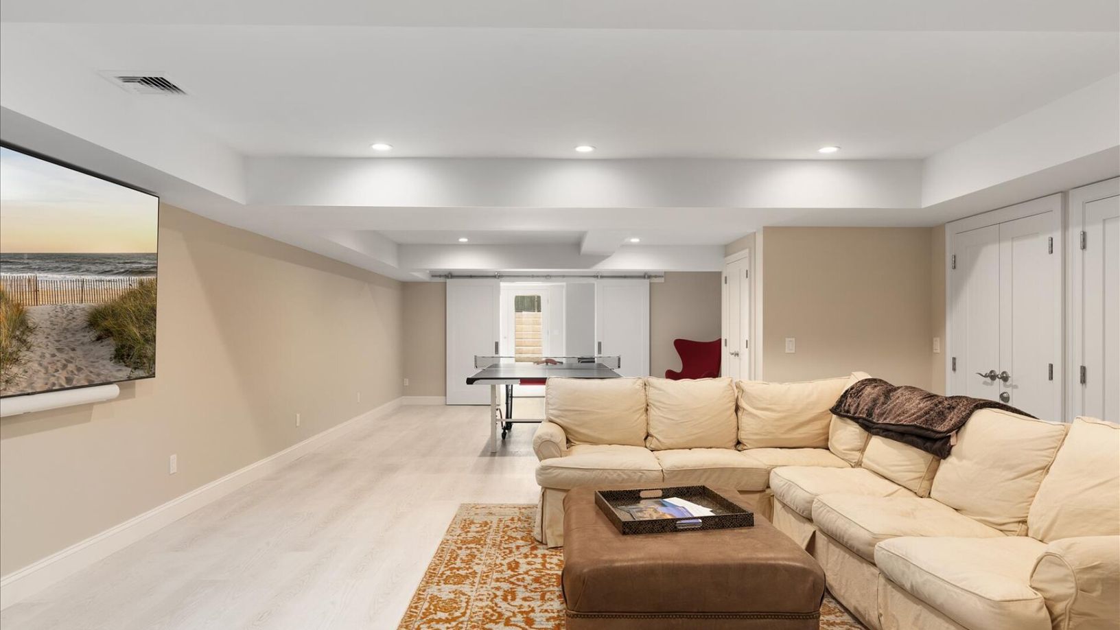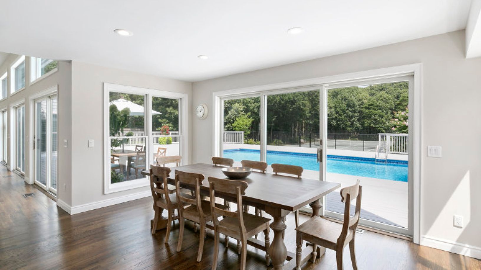 This newly renovated secluded modern home is the ultimate Hamptons getaway. As you walk into the home you'll find a beautifully open and airy living and dining area with new kitchen appliances and sleek black stone countertops. Guests can lounge out on the three oversized couches that overlook the expansive pool deck. Want to