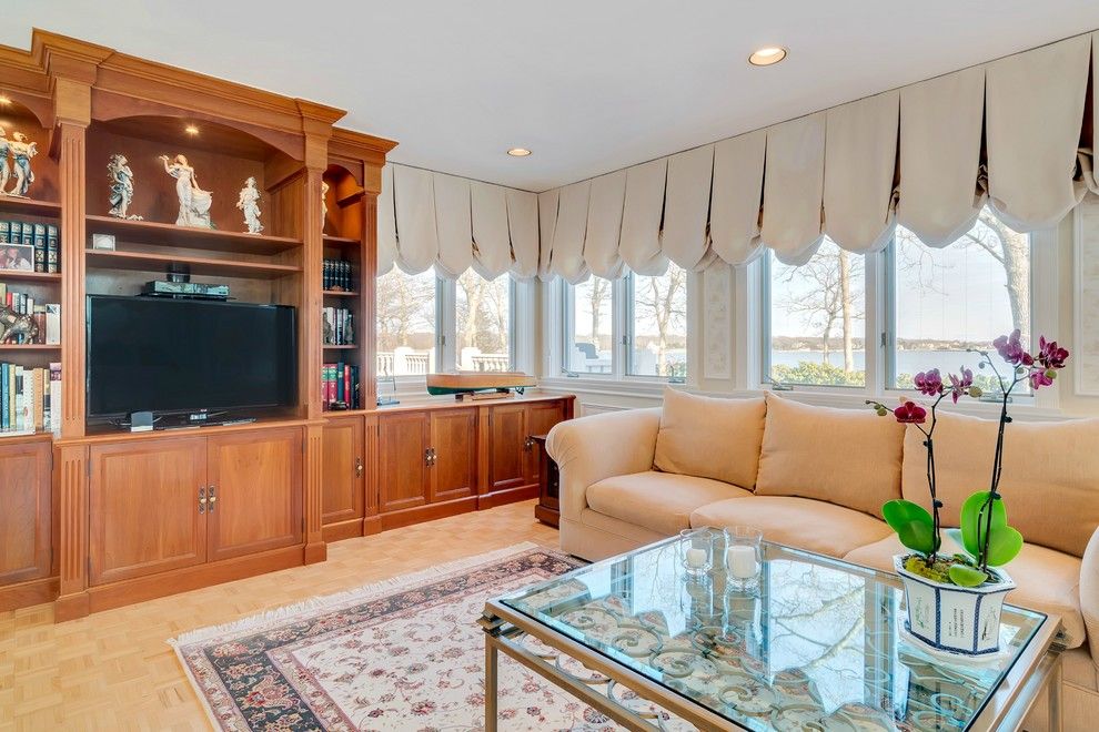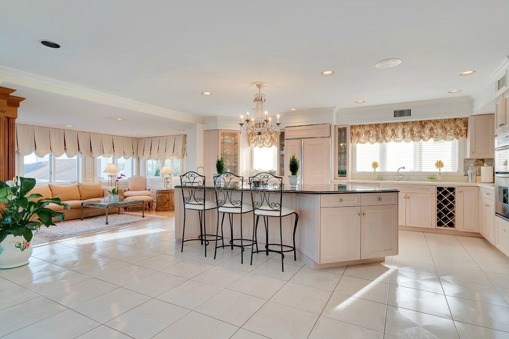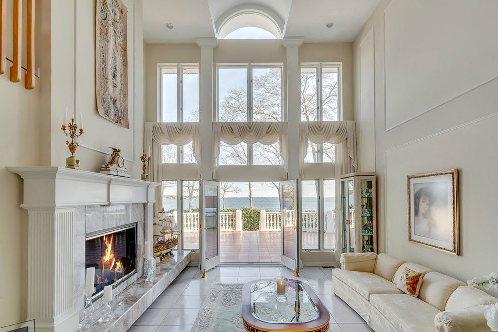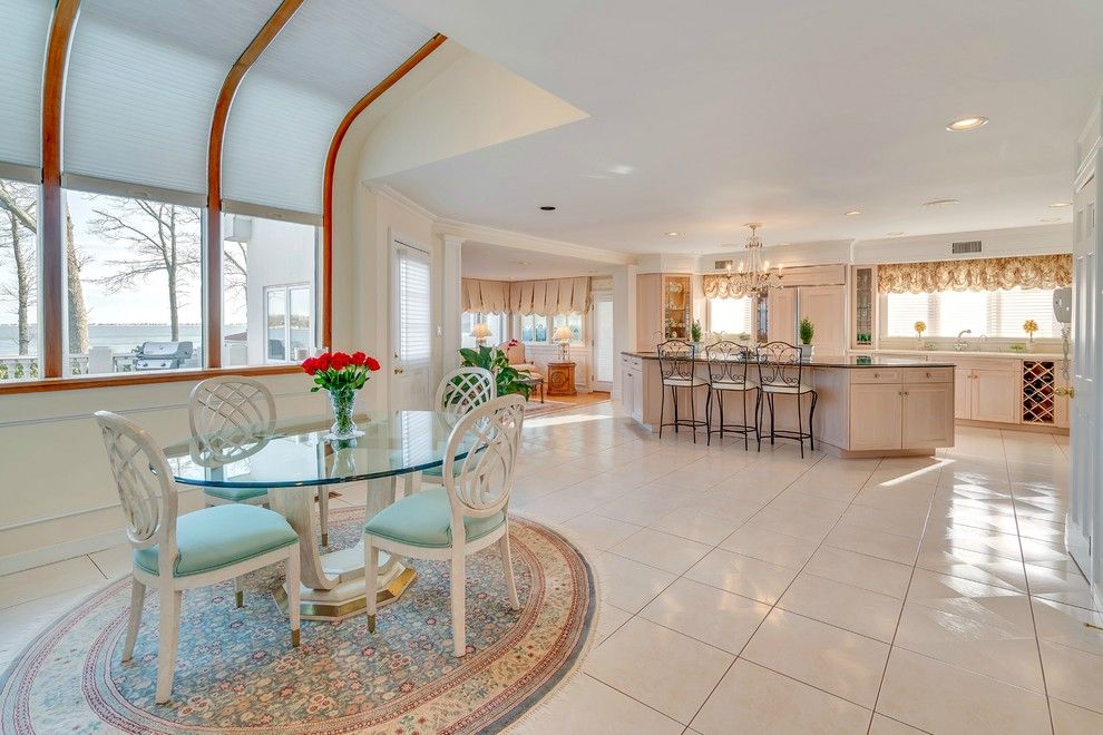 Located in the estate section, this 8,000 square foot custom villa with views of the open bay. Large iron gates greet you as you drive onto the property, you will immediately take notice of the majestic plantings and beautiful landscaping. From the moment you step foot into the house you are greeted by beautiful views of the Moriches Bay, framed nicely by floor to ceiling windows in the living room. The kitchen was designed with entertaining i