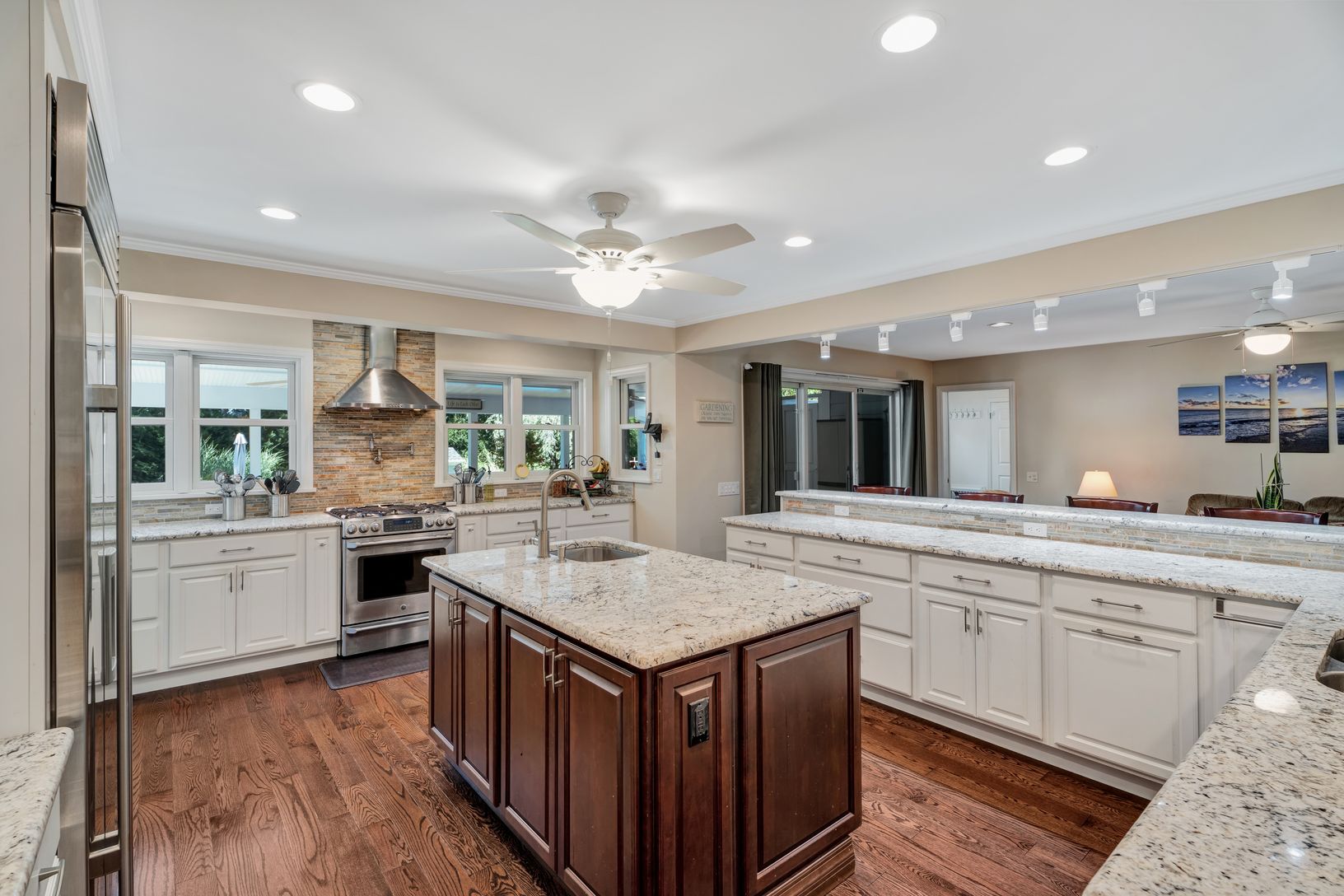 On a rare village half acre sits this recently updated classic 4-bedroom home, designed for entertaining. The large living/dining room flows beautifully into the enormous chef's kitchen with radiant heat, stainless steel appliances, granite countertops, and a breakfast bar, all overlooking the adjoining media room. Additionally on the first floor is an office with custom built-in shelves and desk, along with a laundry room and large pantry. U