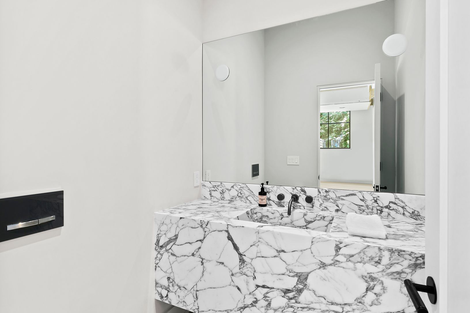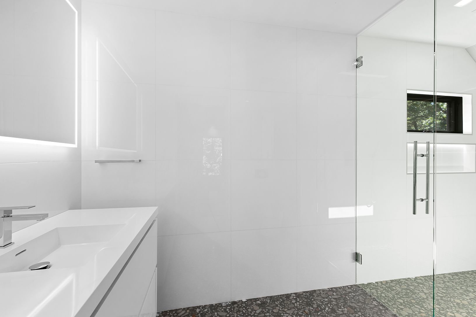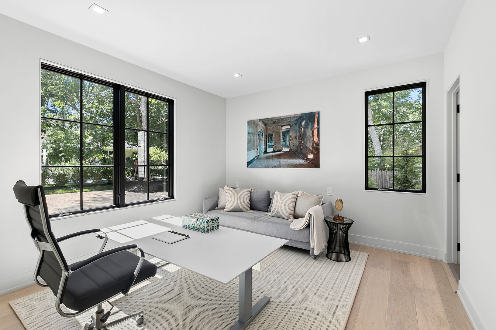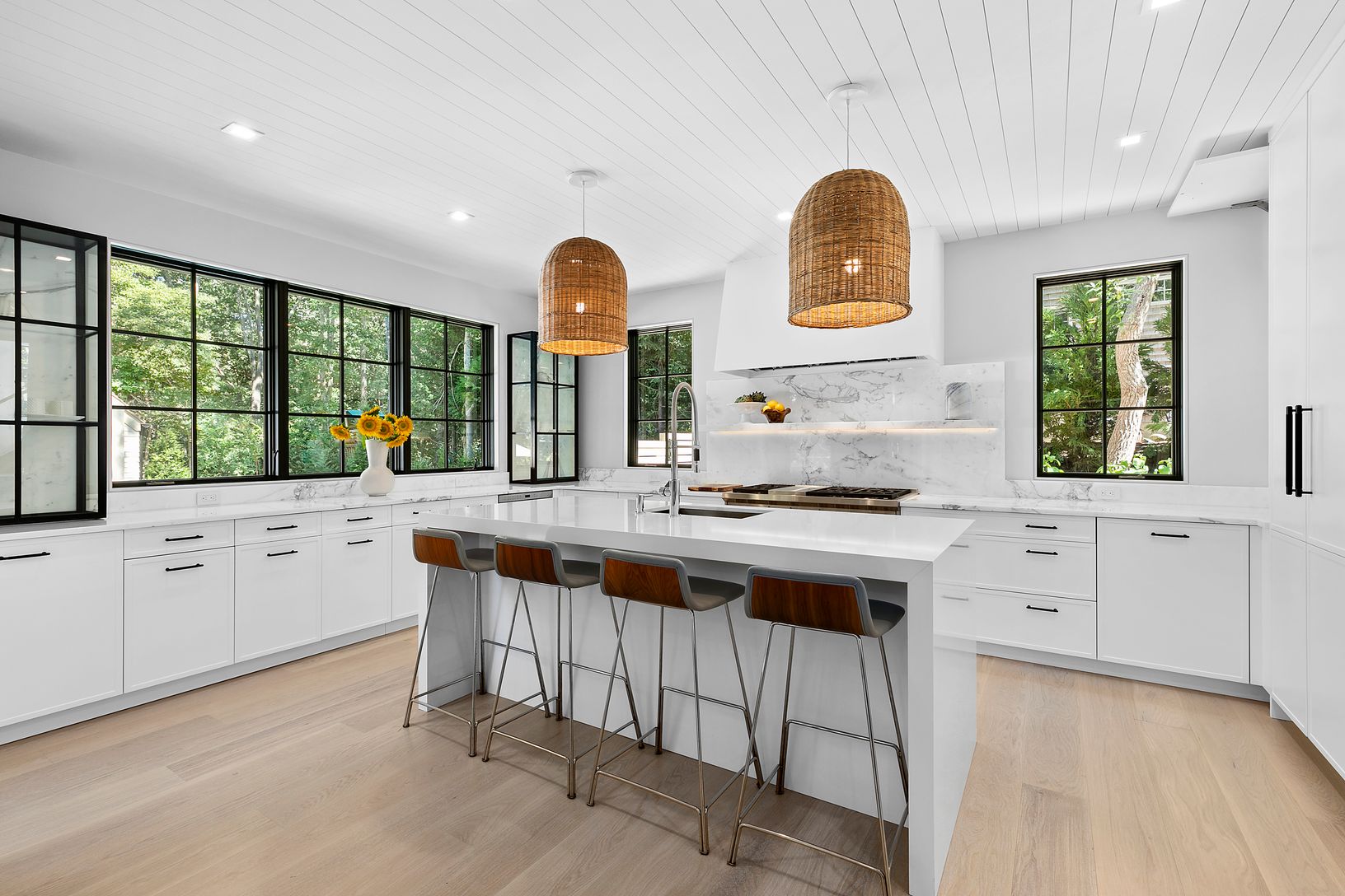 Welcome to 'Sag Tropez,' Sag Harbor's newest contemporary masterpiece from Bank Development Group, just moments to sandy Ninevah Beach with mooring rights. This 5-bedroom new construction features the finest finishes and amenities, from the custom fireplace in the living room to the detached pool house with a full wall of glass overlooking the heated pool. The open floor plan greets you with a stunning double-height foyer and glass staircase a