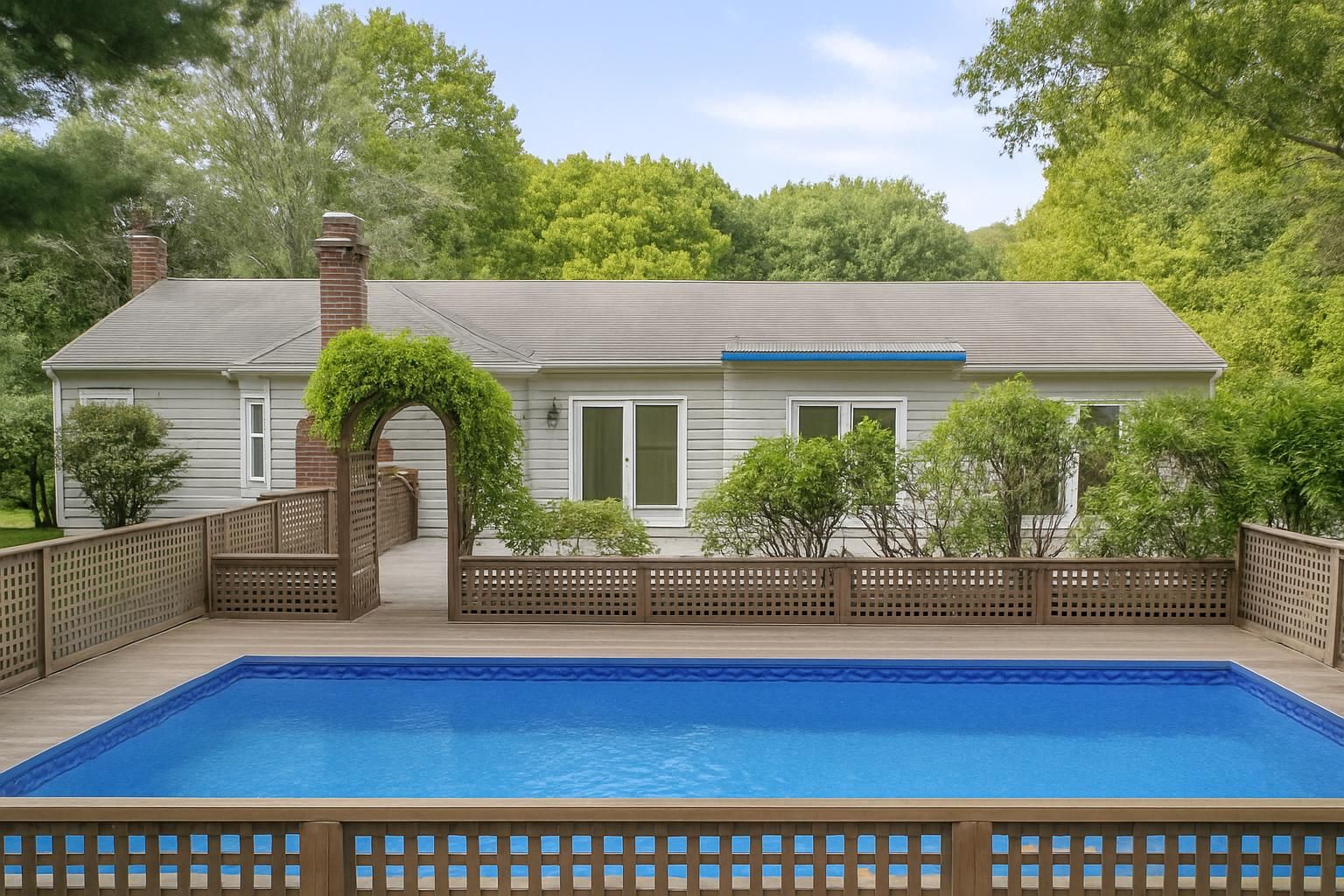 This spacious 4-bedroom, 3-bathroom ranch on .57 acres offers year-round comfort with classic Hamptons style. The open-concept layout makes everyday living and entertaining easy, while features like a heated pool with mahogany decking and fencing, outdoor shower, and wood-burning fireplace add to its relaxed appeal. Set on a lushly landscaped, well-manicured property, the home has cedar and brick siding that give it timeless curb appeal. The s